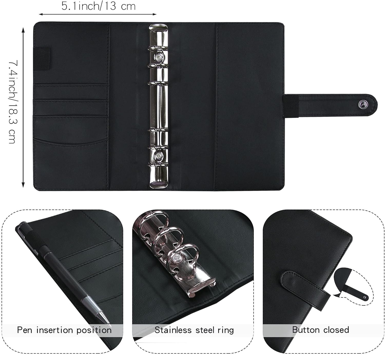 - PU Leather A6 Budget Binder: Money saving binder is made of high quality PU leather material, with 6 stainless steel rings to flexibly adjust the items, and strong magnetic fasteners to keep the envelope binder tightly closed. Inside multifunctional hidden compartment and pen sleeve, can conveniently organize pens, ID cards, passports, bank cards, shopping cards, business cards.