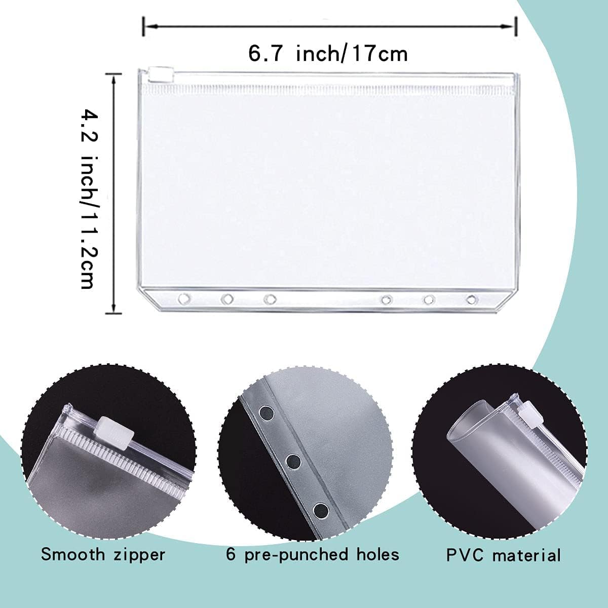 - Tear-proof A6 cash envelopes pouch: 12pcs A6 zipper envelopes are made of high quality PVC material, tear-proof, waterproof, moisture-proof, acid-free and odorless. The cash envelopes have a smooth zipper design to easily store cash, bills, stamps, shopping vouchers and more.