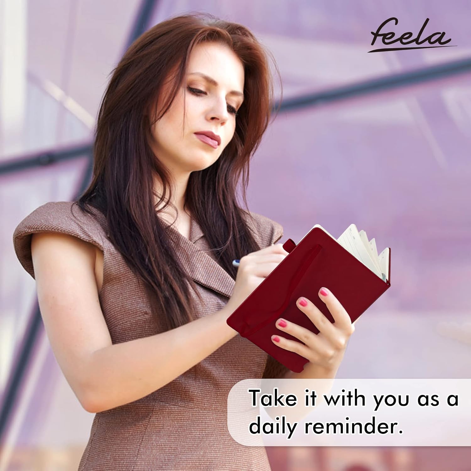 feela 5 Pack Journal Notebook Bulk for School, Hardcover Business Notebooks Classic Ruled Lined Journals with Pen Holder for Work Note Taking, with 5 Black Pens, 120 GSM, 5.1”x8.3”, A5, Wine