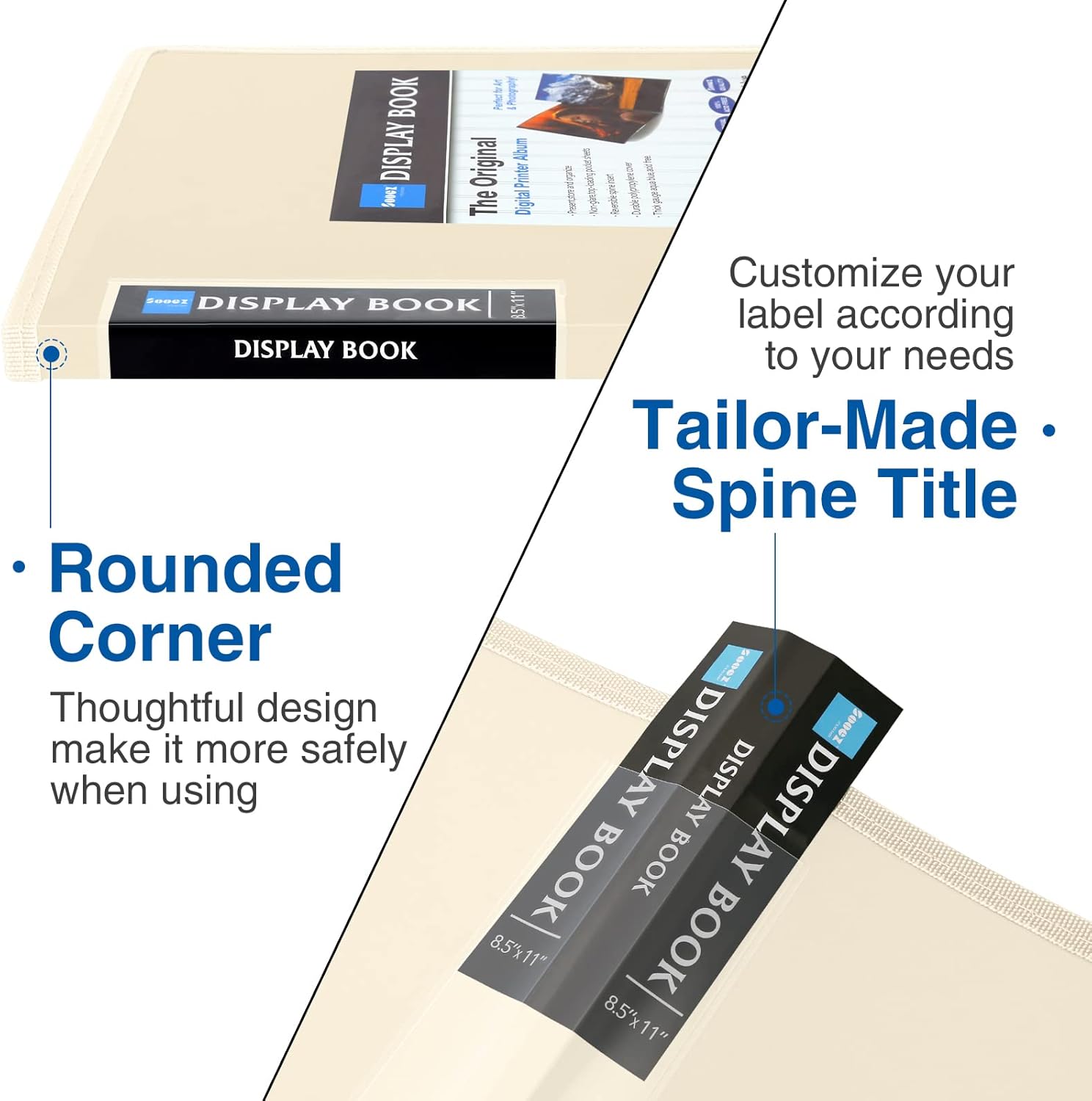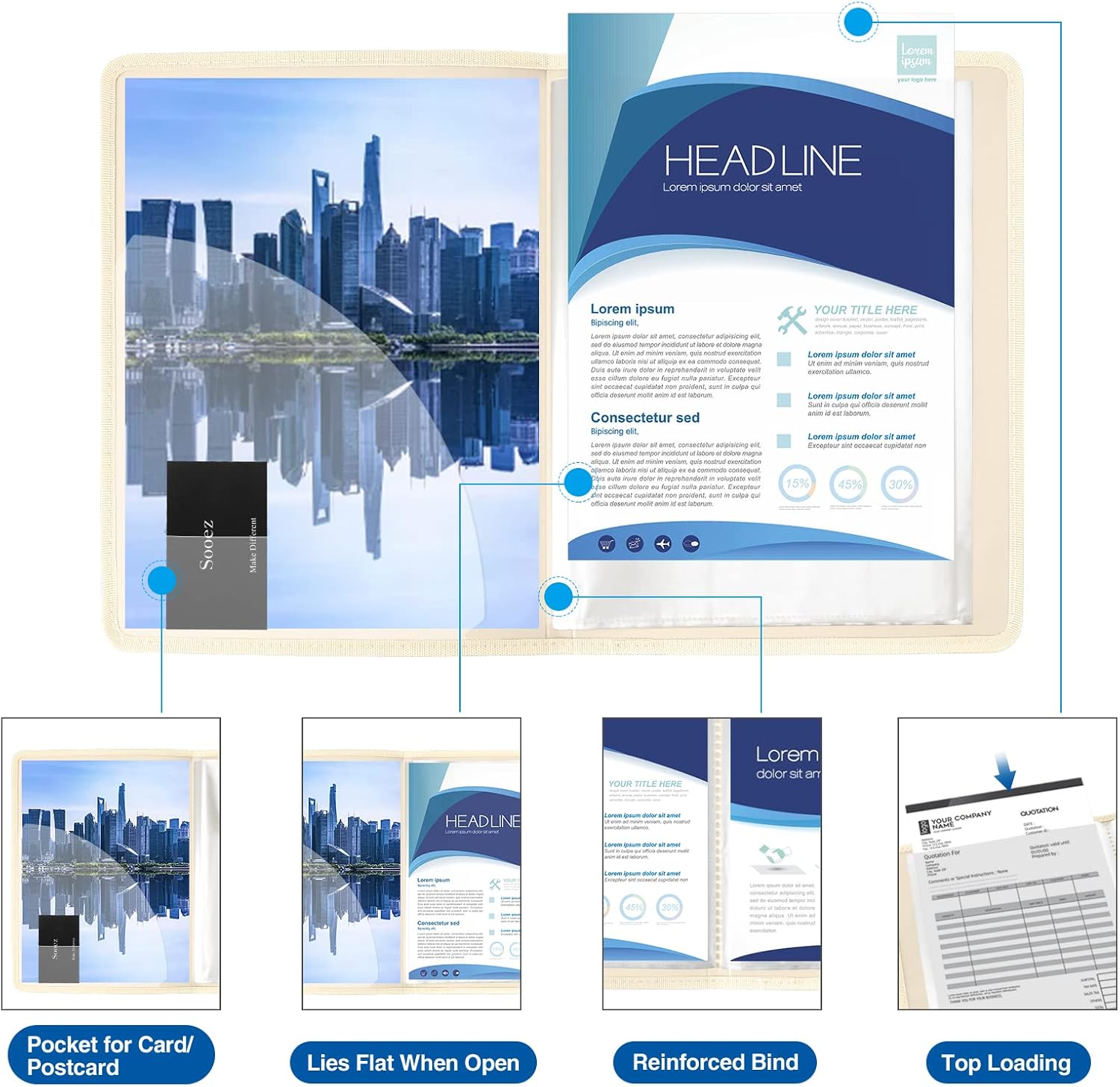 Sooez 30-Pocket Binder with Plastic Sleeves 8.5x11 (Ivory), Heavy Duty Art Portfolio Folder with Clear Sheet Protectors, Display 60 Pages, Presentation Book for Artwork, Document Organizer Binder