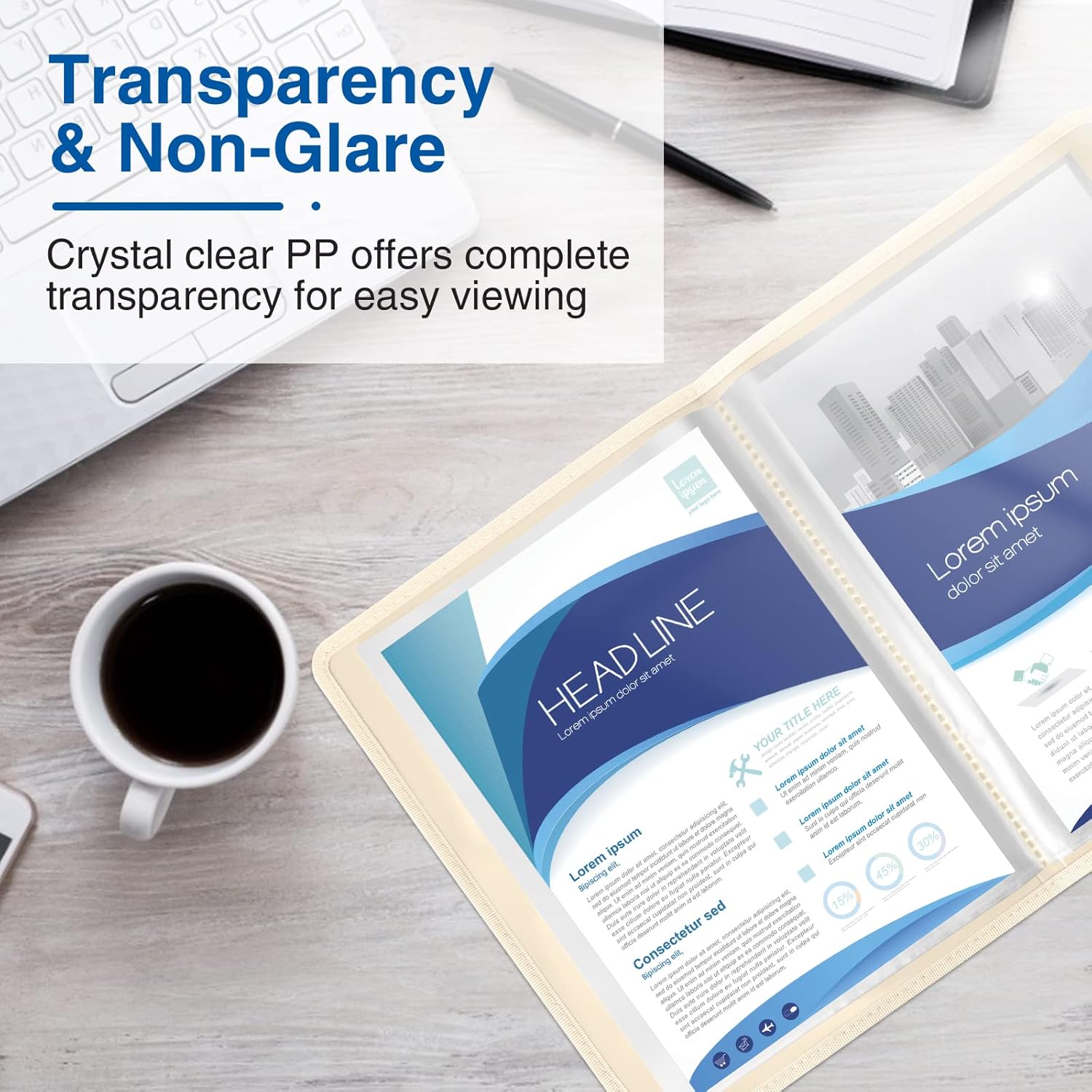 - High Transparency & Lies Flat When Open: Our presentation book with crystal clear PP sheet protectors offers complete transparency for checking through and organizing. Bound sheet protector lies flat when open, free your hands.