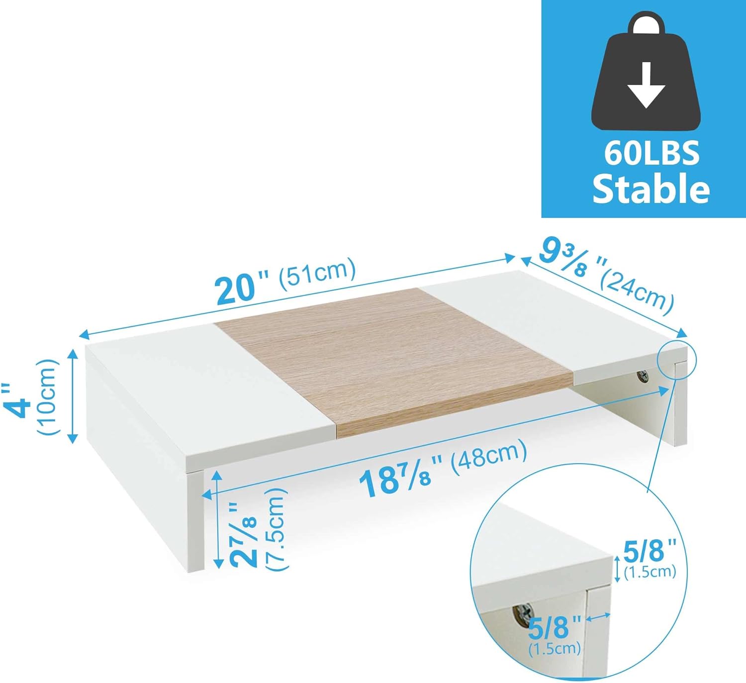 TEAMIX 20 Inch Monitor Stand Riser, Wooden Desktop Riser for TV/PC/Laptop/Printer, Cozy Monitor Riser with Storage, Laptop Shelf for Home Office