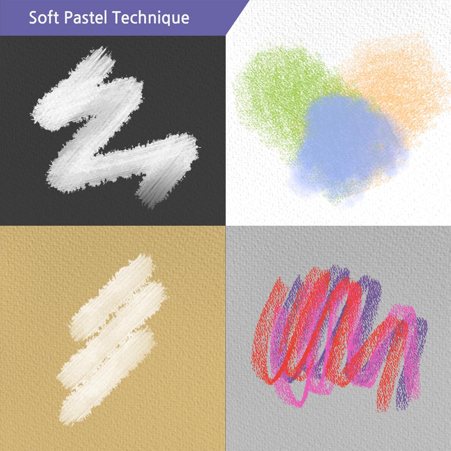 - Adaptable on Multiple Surfaces: The violetto pastels isn't limited to just paper. Artists can vividly express their creativity on a variety of surfaces, from pastel-only papers, floors, walls, stones, trees, etc