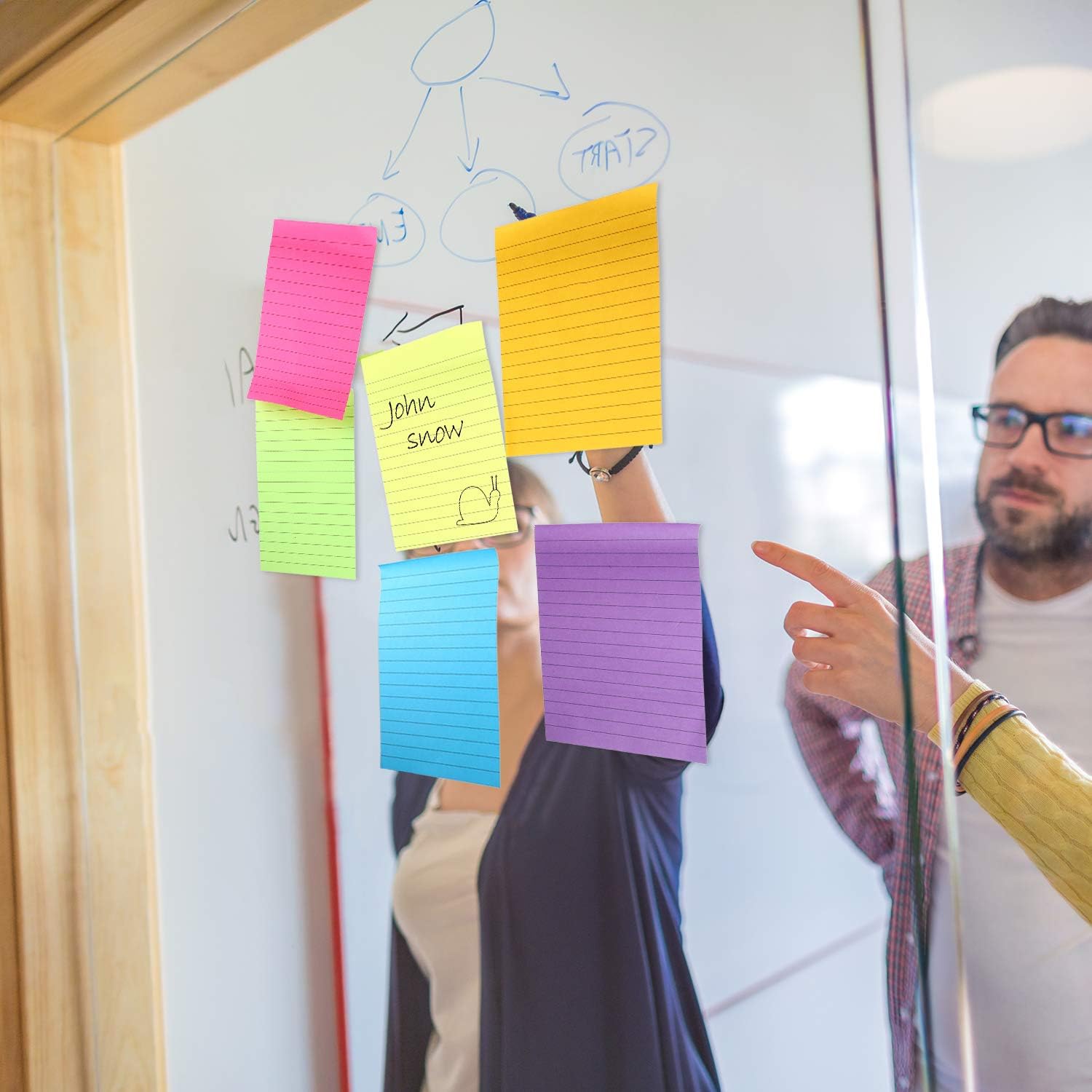 - Quality material: these colorful lined sticky notes adopt the material of wood pulp for a strength and quality paper, which is safe and serciceable to use, designed with smooth surface for writing fluently, easy to use and remove, no residue after tearing off