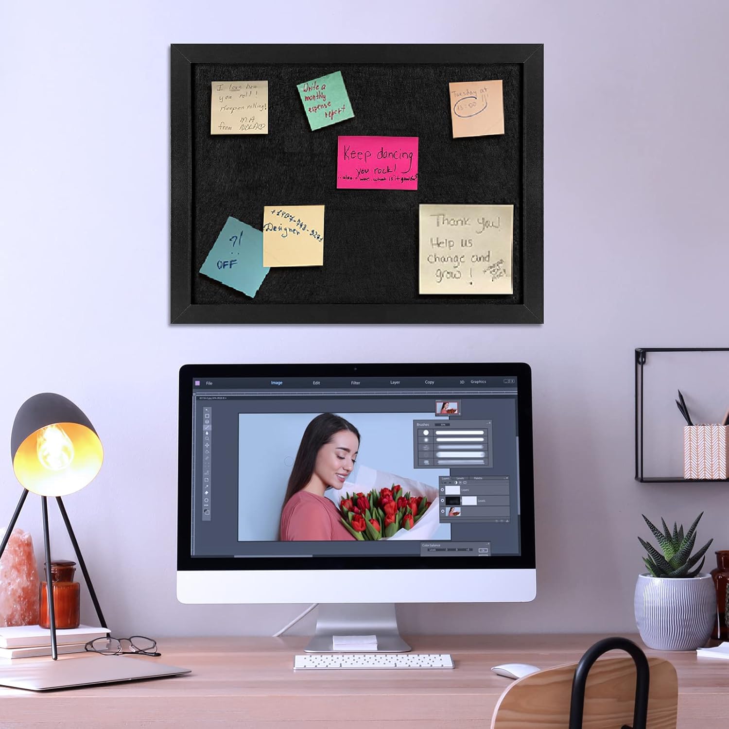 TORASO Cork Board Bulletin Board with Felt,Wood Framed Display Bulletin Board for Walls with Pins, Eye Bolts, gaskets, Screws, Pin Board for Office, School and Home(Black,1pc)