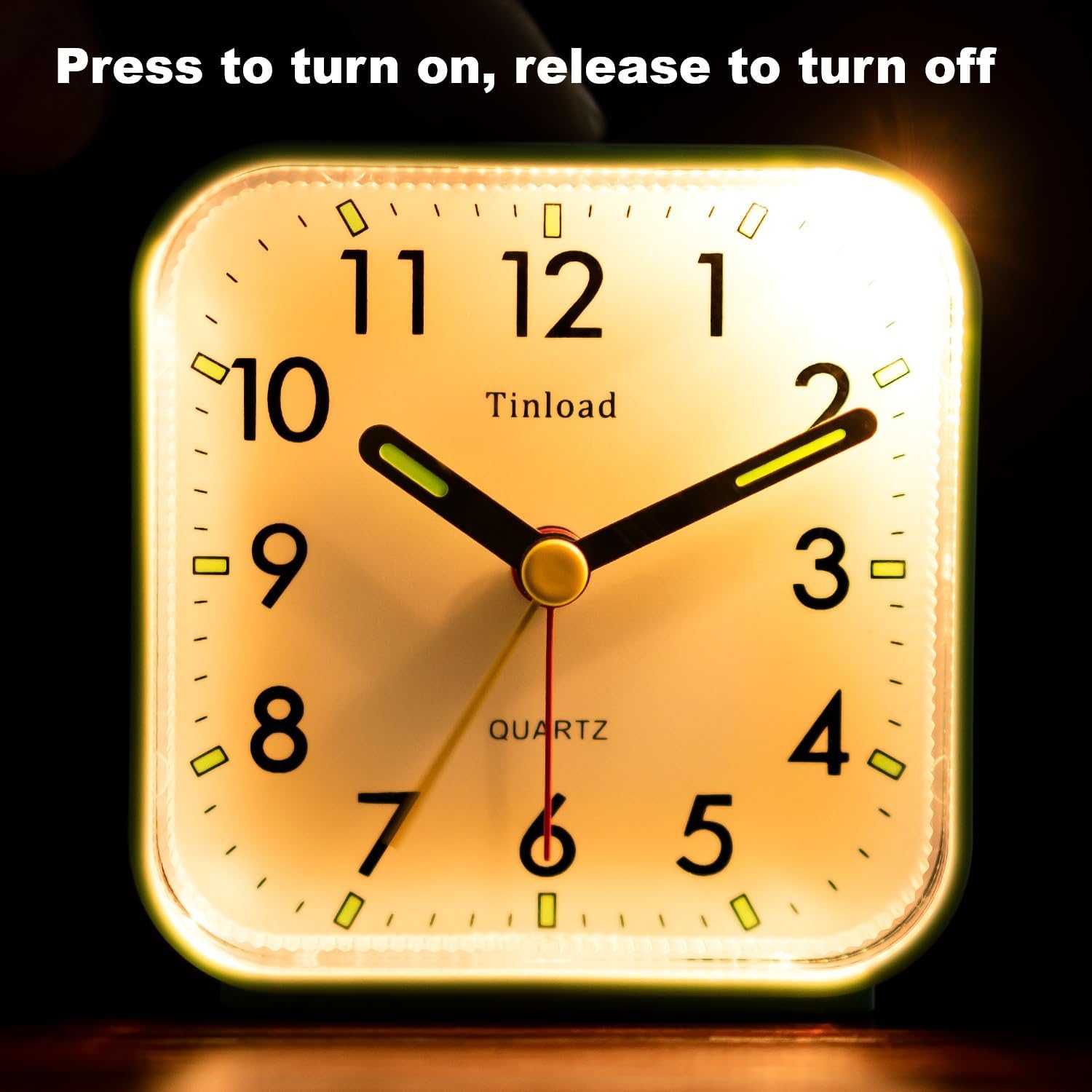 Small Battery Operated Analog Travel Alarm Clock Silent Non Ticking,Gentle Wake, Ascending Beep Sounds, Snooze,Lighted on Demand,Easy Set (Mint Green)