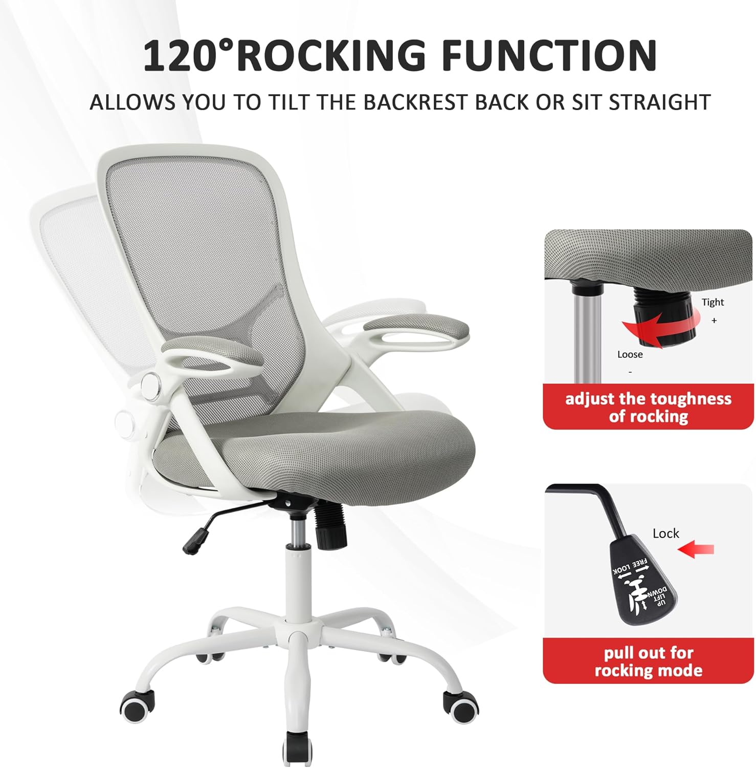 HYLONE Office Chair Ergonomic Desk Chair with Adjustable Armrests, Mesh Executive Chair, Home Office Computer Chairs for Long Hours(Grey)