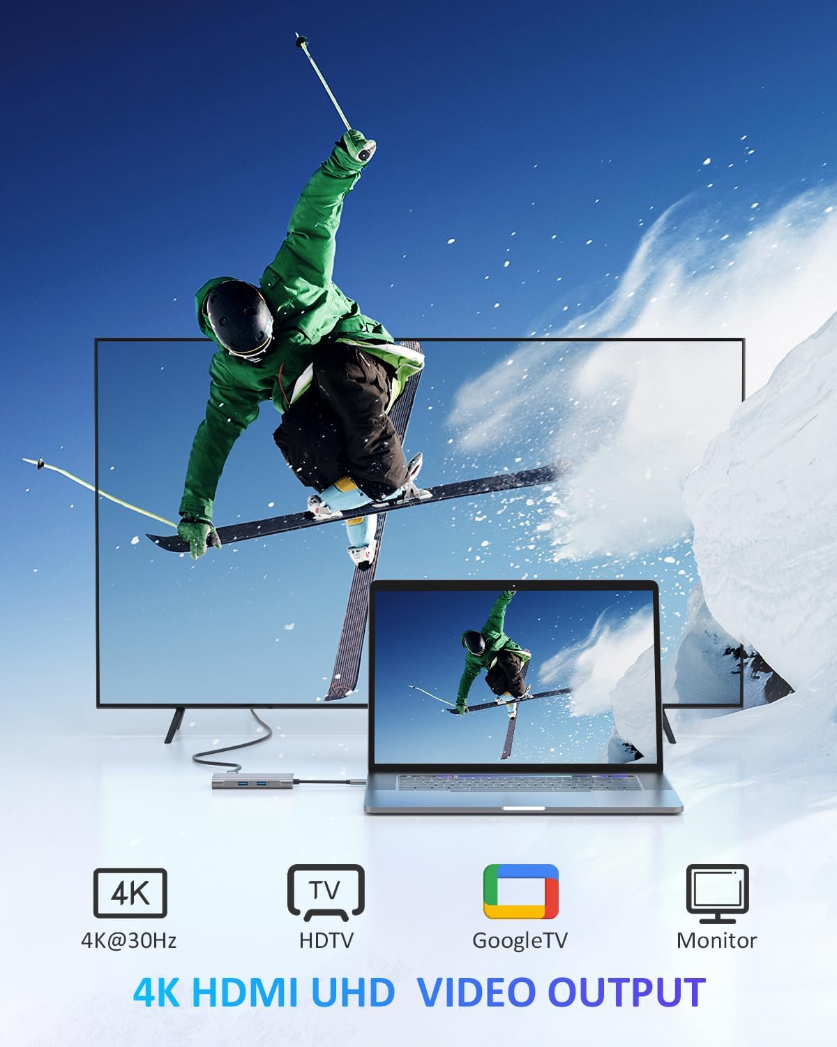 - 【100W Power Delivery】UtechSmart USB Type C Hub with 100W Power Delivery lets you charge your laptops, Chromecast with Google TV, Steam Deck, and other Type C devices with Blazing-fast speed and uninterrupted power.