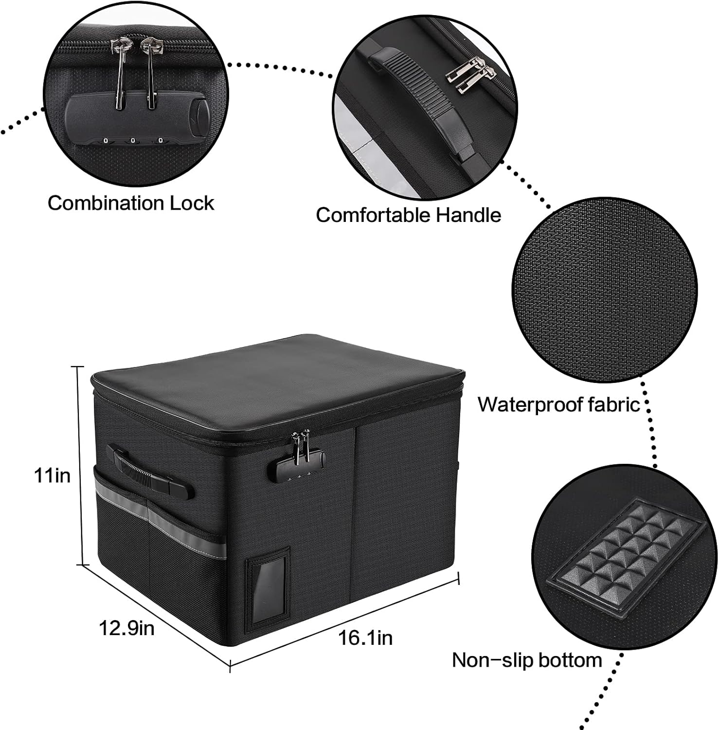 - Combination Lock: The double zipper code lock improves the security of the file storage box. In addition, the three-digit code lock device provides the maximum safety for your valuables such as contracts, cards, certificates, conference materials, passports and etc.(Does not include folders)