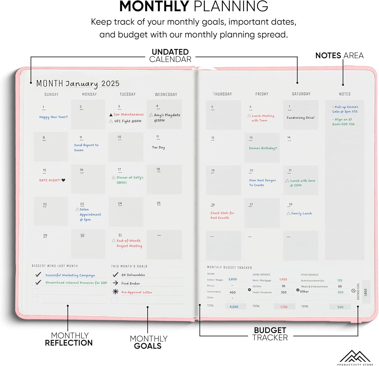 Undated, 2025 Planner, 5.8” x 8.3” - The #1 Productivity Planner to Achieve Your 2025 Goals - Planner 2025-2026 by PRODUCTIVITY STORE (A5, PINK)