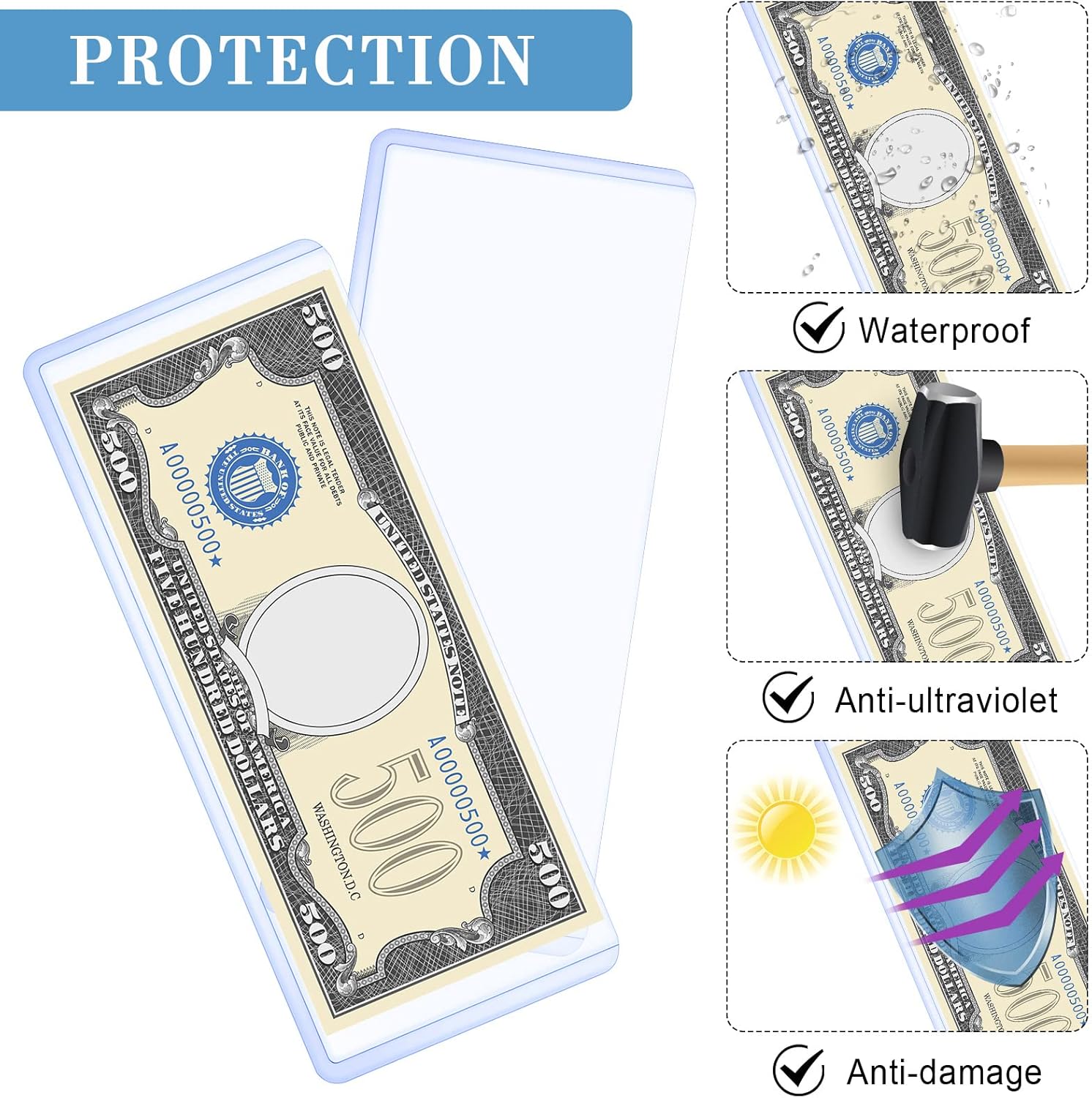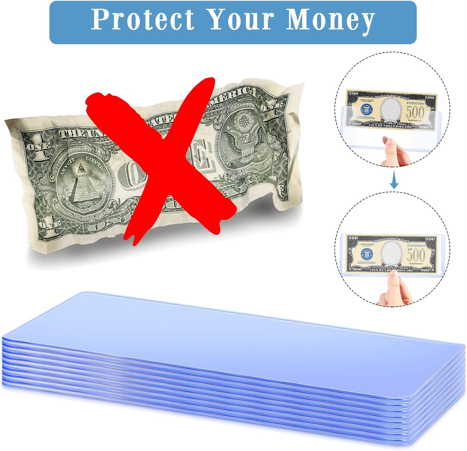 - Protect Your Collection: with these dollar bill holders, you can display or store your banknotes, stamps, souvenirs and others nicely, to protect them from dust or breakage; Tips: there is a protective film on the surface of the product; Please tear it off after receiving it and you can use it normally