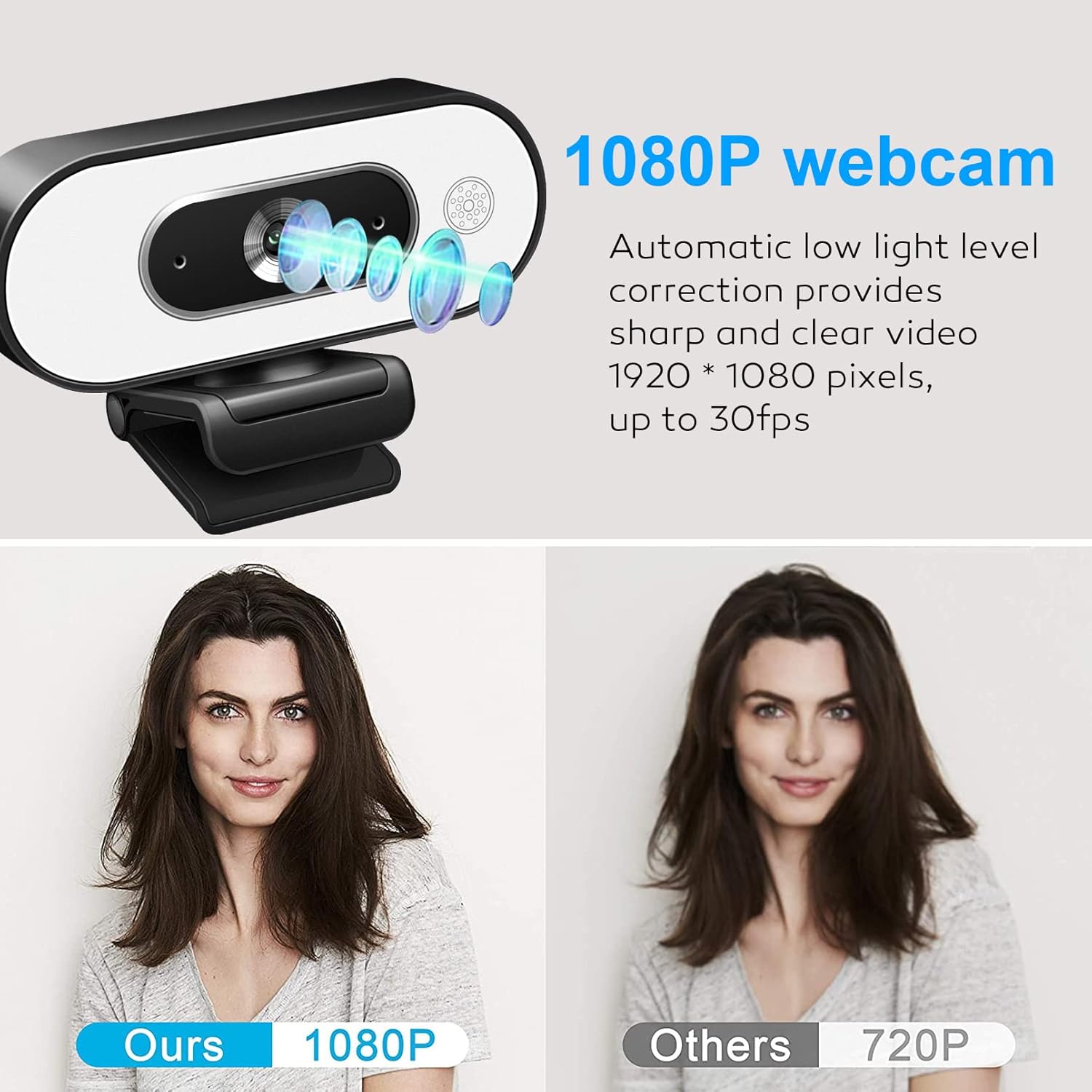 - [Three-Level Touch Adjustable Webcam with Ring Light] The built-in ring light in the webcam with ring light provides three different levels of lighting (high light-medium light-low light); the stream camera also has sensitive touch control. The laptop camera uses automatic light correction technology. Compared with many other laptop camera with built-in lights, webcam with ring light have softer light tones and can produce bright and clear images even in dim environments.