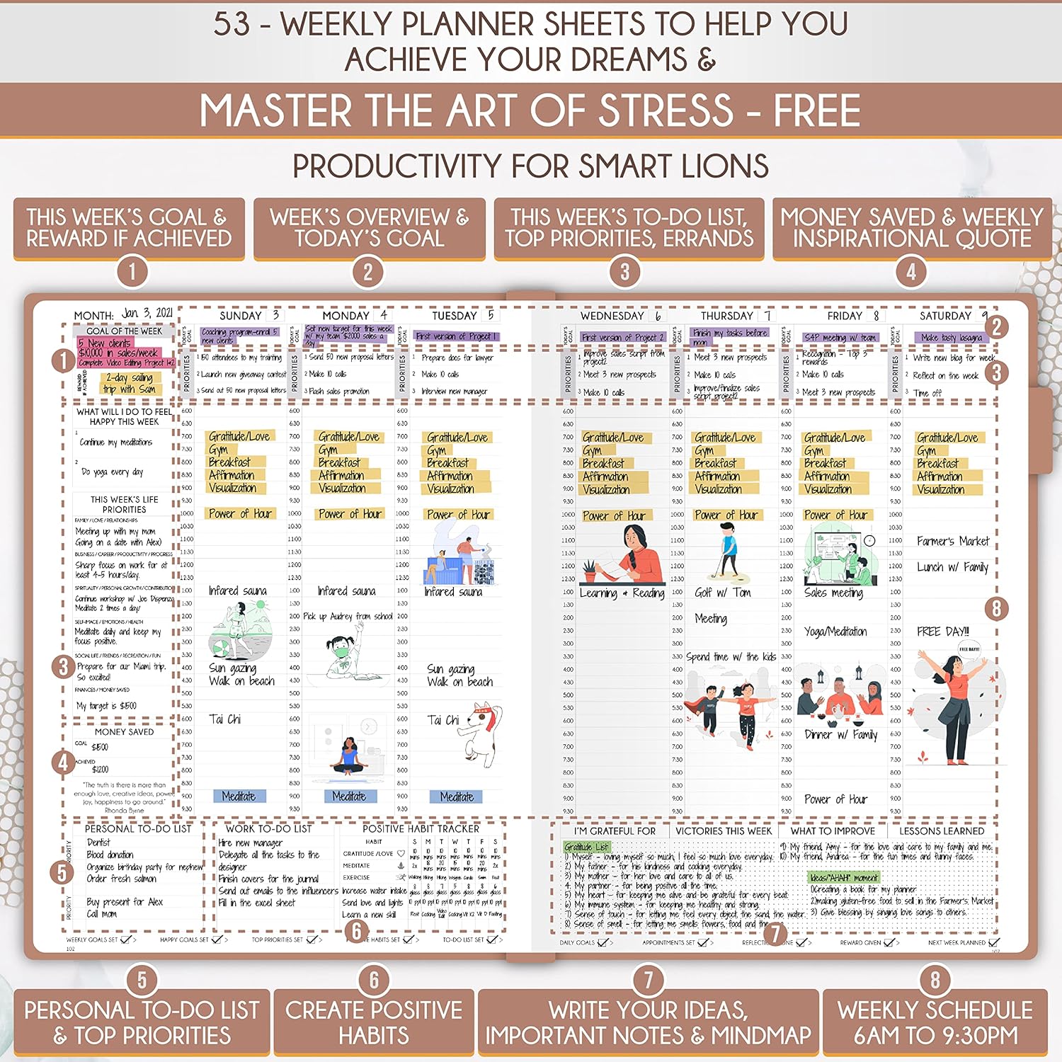 - GOAL SETTING PLANNER - Learn how to set big goals, be happy, and efficiently manage your time by adopting the same tactics used by millionaires to set and achieve them