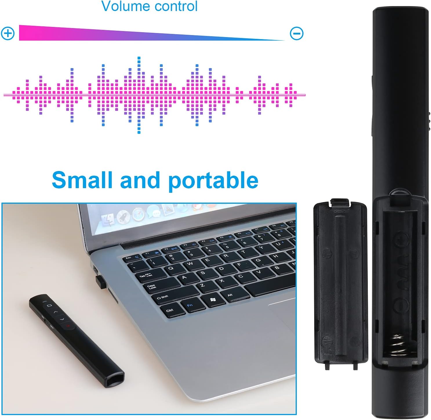 - [ Perfect Tool and Gift ] The presentation clicker will be the perfect tool for your presentation, teaching and meeting, and it will be the best gift for your friends or family. Power by 1* AAA battery.