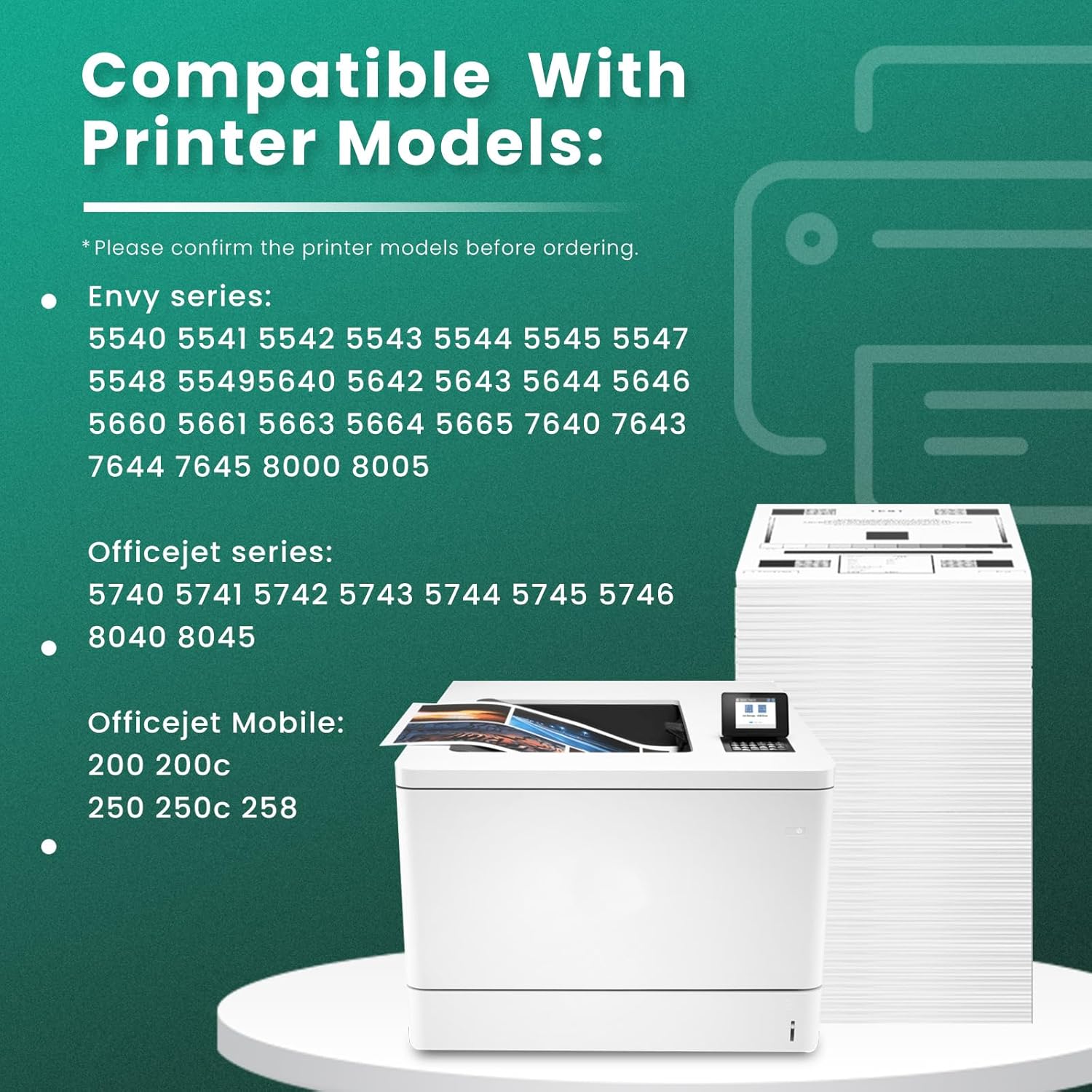 - Compatible Devices : For HP ENVY 7640, 5660, 5540, 5640, 5642, 5542, 5543, 5544, 5545, 5547, 5548, 5549, 5643, 5644, 5646, 5661, 5663, 5664, 5665, 7643, 7644, 7645, 8000, 8005, OfficeJet 200 Mobile, OfficeJet 250 Mobile, OfficeJet 258 Mobile, OfficeJet 5746,5740, 5743, 5745, 5741, 5742, 5744, 8040, 8045 Printers For HP ENVY 7640, 5660, 5540, 5640, 5642, 5542, 5543, 5544, 5545, 5547, 5548, 5549, 5643, 5644, 5646, 5661, 5663, 5664, 5665, 7643, 7644, 7645, 8000, 8005, OfficeJet 200 Mobile, OfficeJet 250 Mobile, OfficeJet 258 Mobile… See more