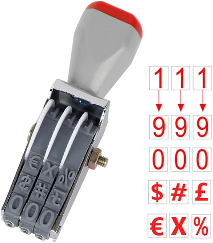 - 3 Digit rubber stamp Design : 3-digit3-wheel,Each belt 0-9 (10 digits)and Symbol , each belt can freely rotate different numbers,Symbol. Made of rubber material, durable, not easily be broken