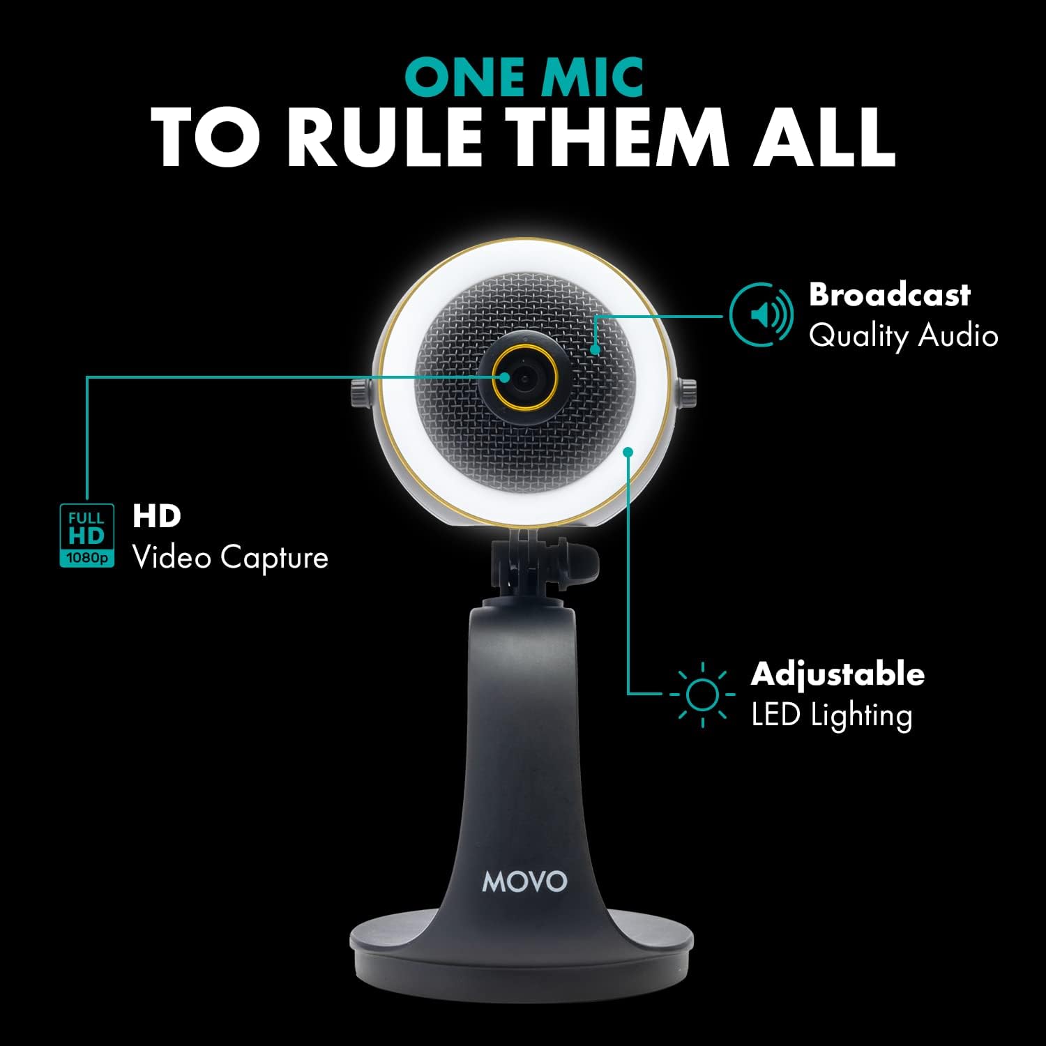Movo WebMic HD Pro All-in-One Webcam with Microphone and Ring Light- 1080p HD Camera, Pro Cardioid Condenser Microphone, LED Ring Light -HD Webcam for Streaming, Video Conferencing, Recording, Gaming