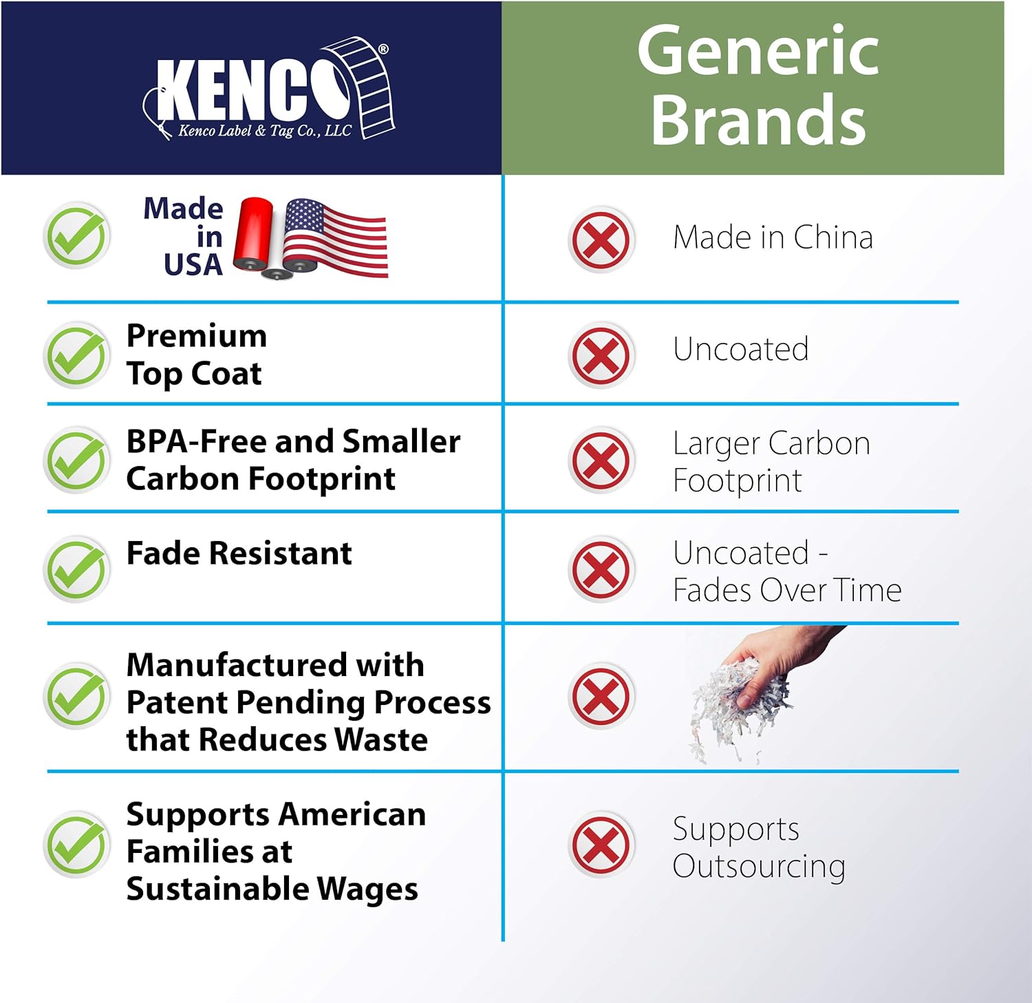 - 3" X 5" Rectangles, 500 Stickers Per Roll. Proudly made in the USA by Kenco