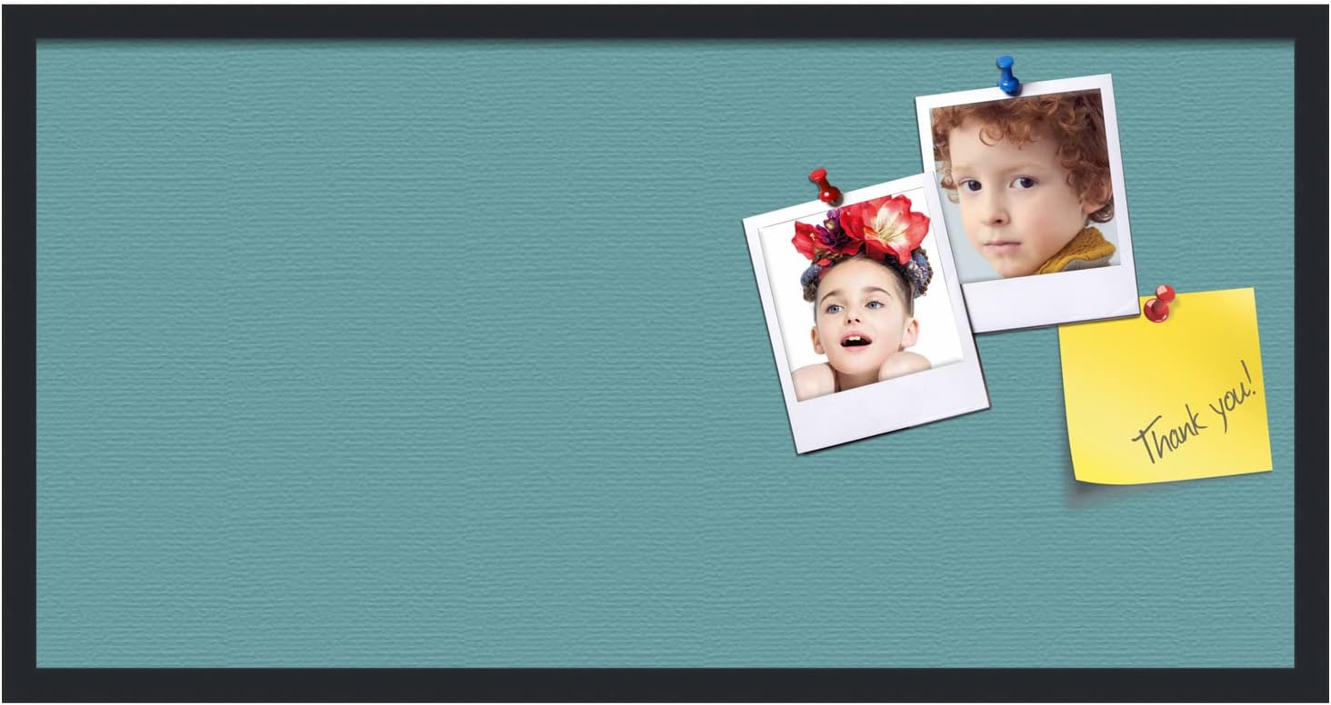 PinPix 36x18 Inch Cork Bulletin Board. This Decorative Framed Pin Board Comes with Aqua Pastel Design and a Satin Black Frame. Ideal for Home Office Decor or Message Board (PinPix-1806)