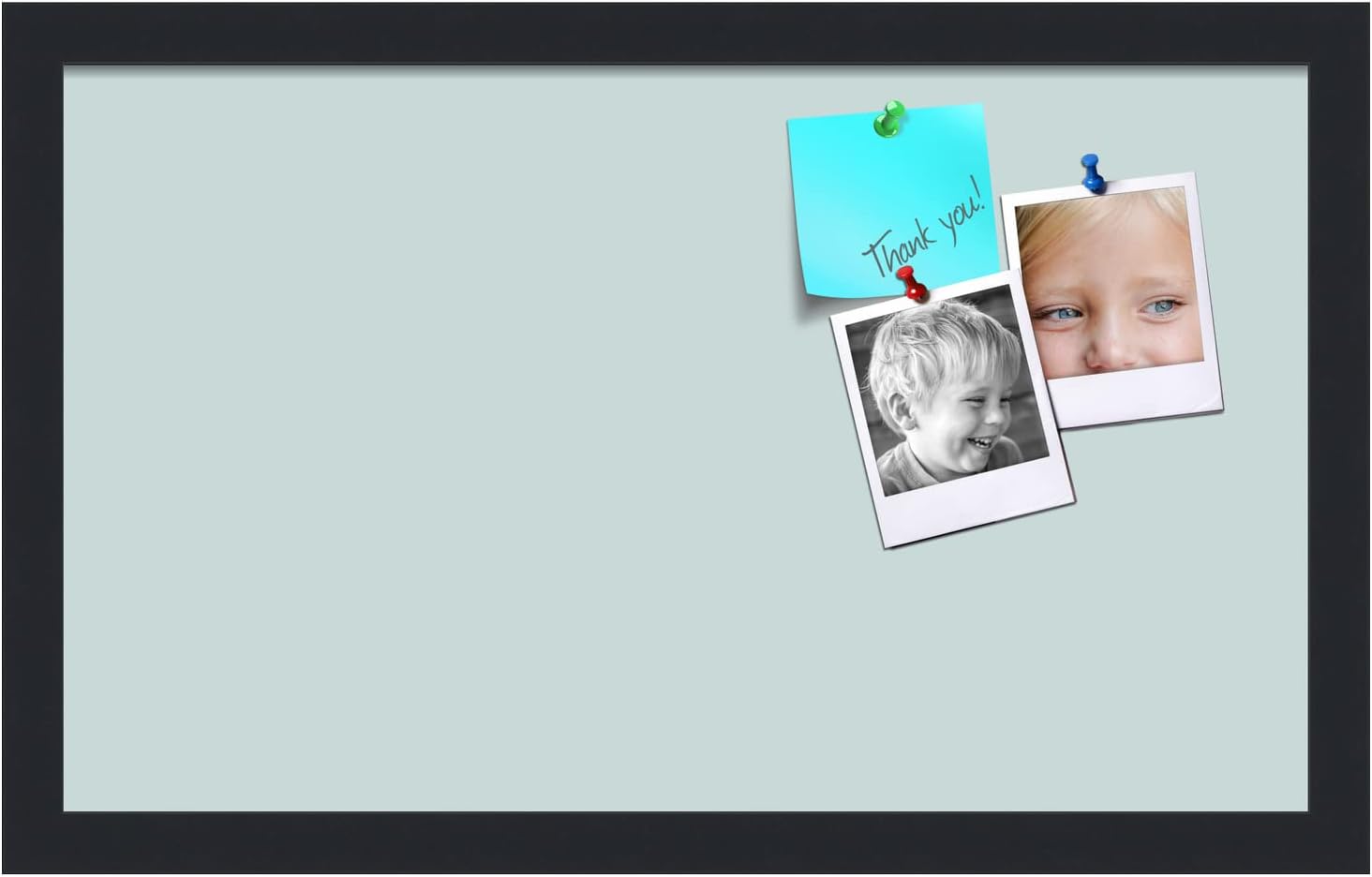 PinPix 20x12 Inch Cork Bulletin Board. This Decorative Framed Pin Board Comes with Soft Blue Design and a Satin Black Frame. Ideal for Home Office Decor or Message Board (PinPix-1814)