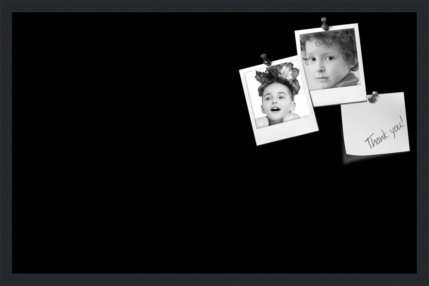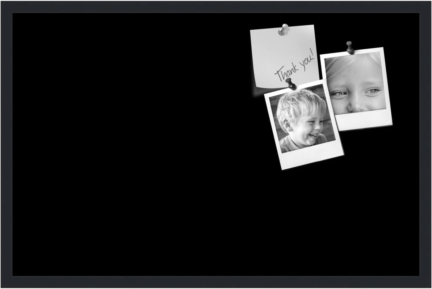 PinPix 34x22 Inch Cork Bulletin Board. This Decorative Framed Pin Board Comes with Solid Black Design and a Satin Black Frame. Ideal for Home Office Decor or Message Board (PinPix-622)