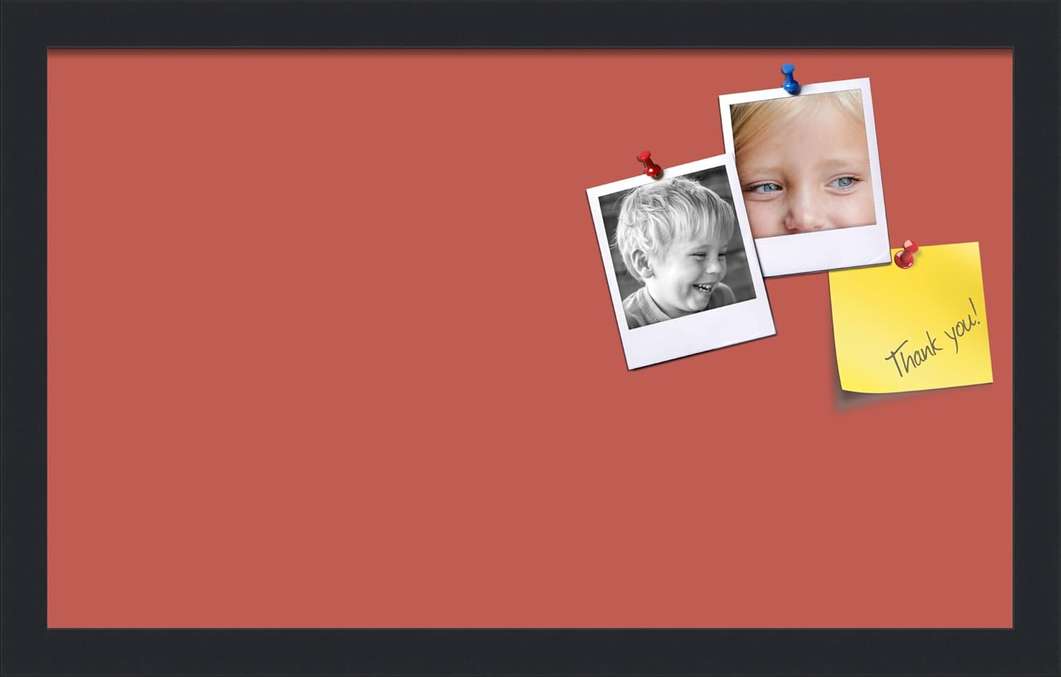 PinPix 20x12 Inch Cork Bulletin Board. This Decorative Framed Pin Board Comes with Crimson Pastel Design and a Satin Black Frame. Ideal for Home Office Decor or Message Board (PinPix-1807)