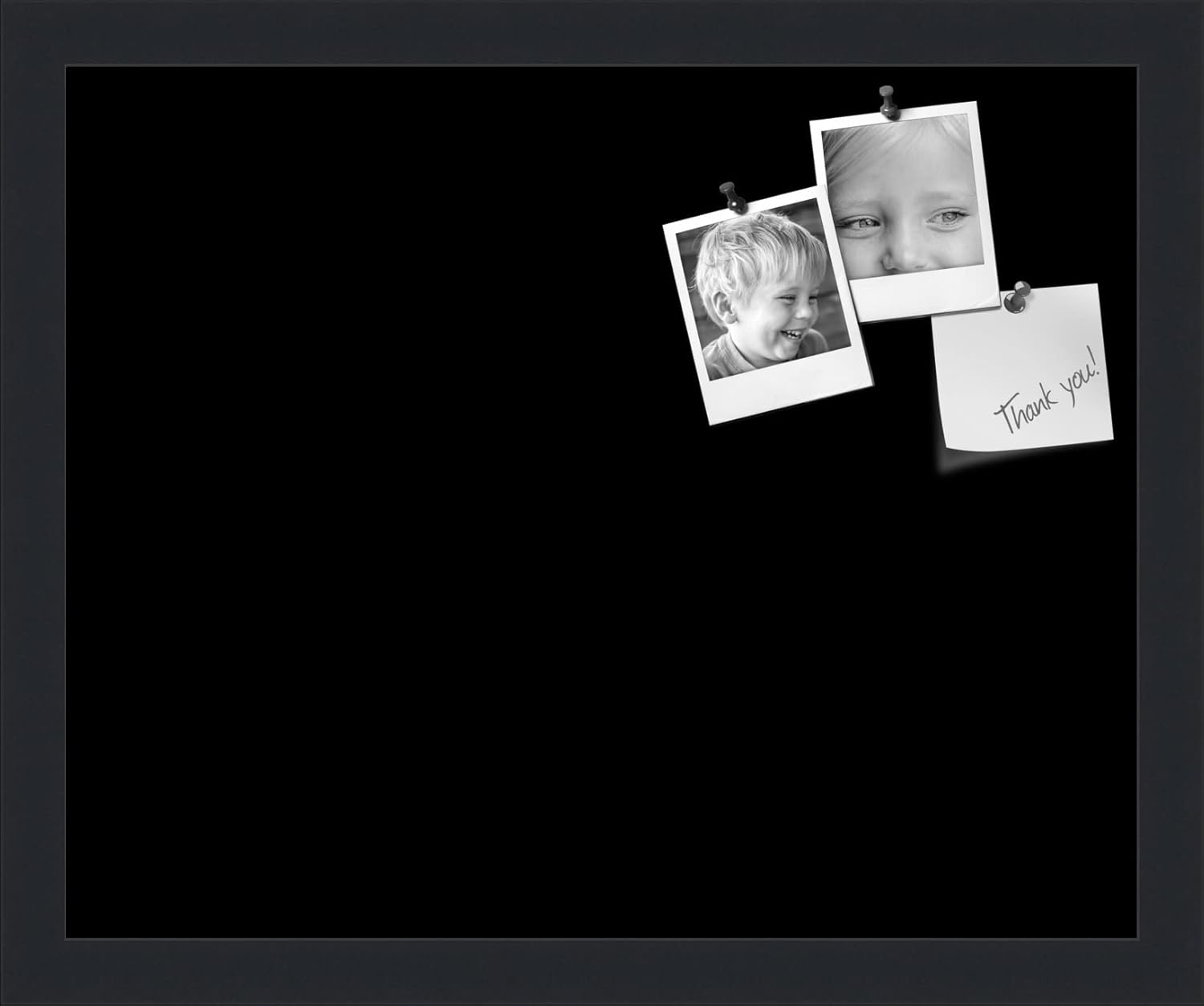 PinPix 16x13 Inch Cork Bulletin Board. This Decorative Framed Pin Board Comes with Solid Black Design and a Satin Black Frame. Ideal for Home Office Decor or Message Board (PinPix-622)