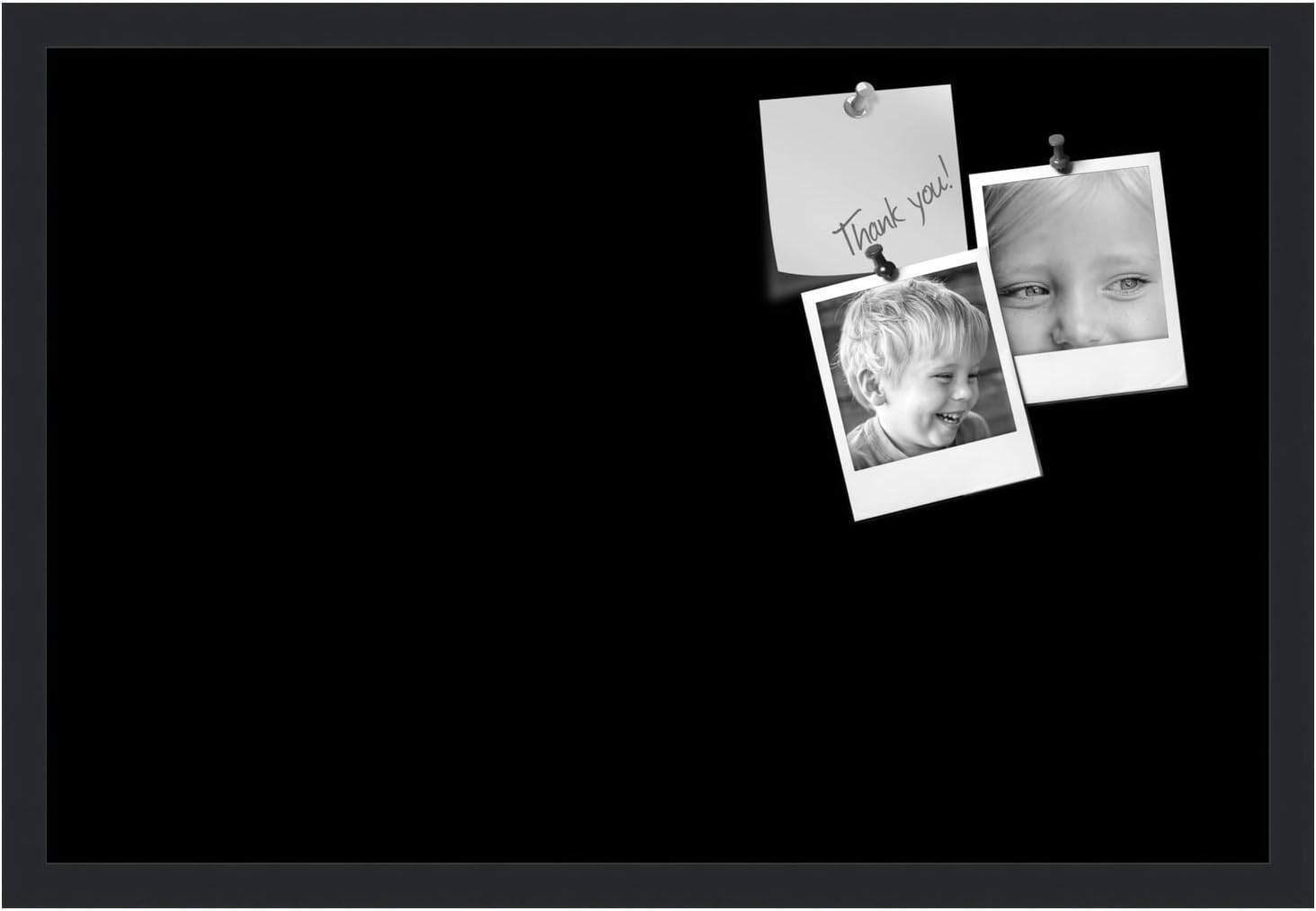 PinPix 27x18 Inch Cork Bulletin Board. This Decorative Framed Pin Board Comes with Solid Black Design and a Satin Black Frame. Ideal for Home Office Decor or Message Board (PinPix-622)
