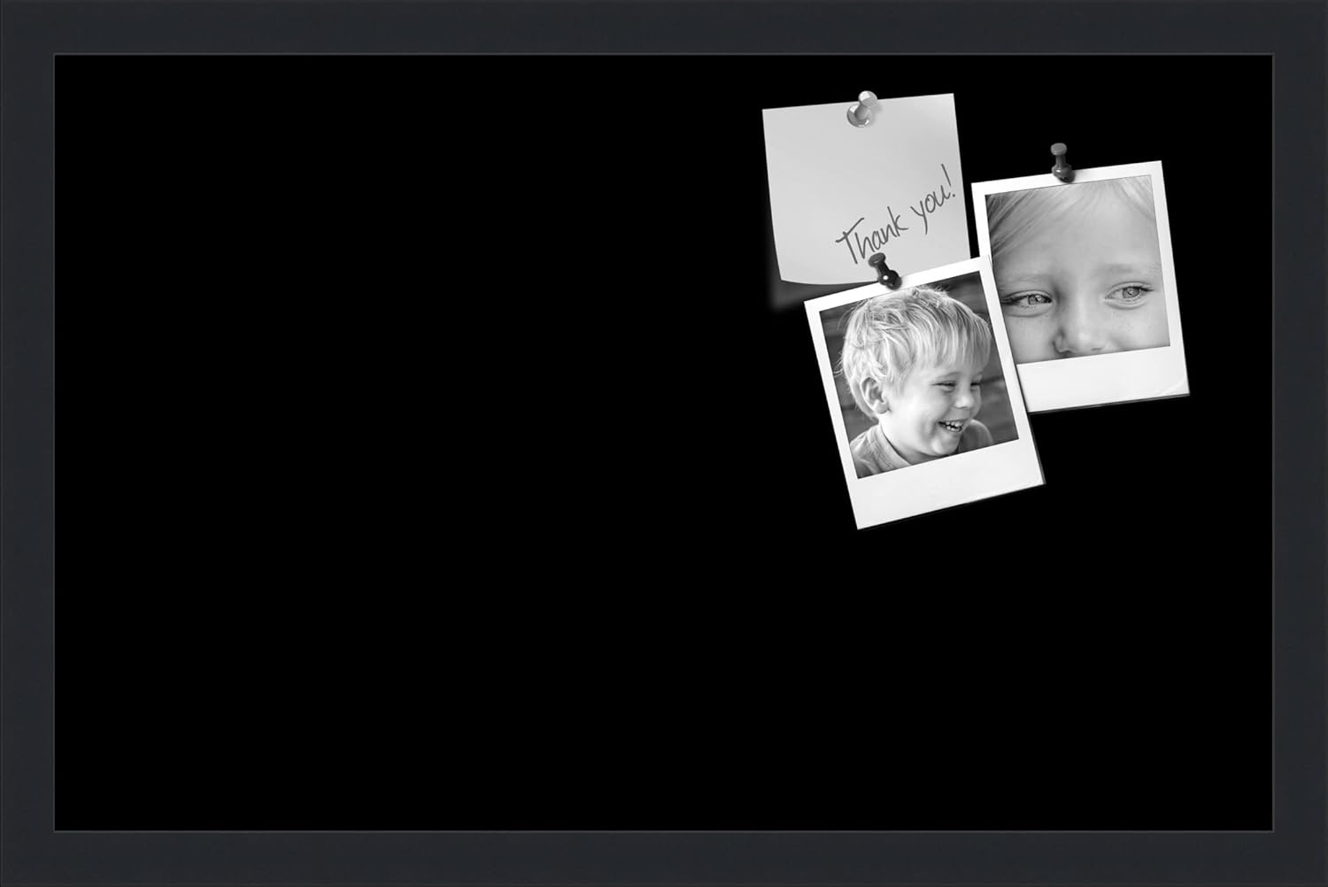 PinPix 22x14 Inch Cork Bulletin Board. This Decorative Framed Pin Board Comes with Solid Black Design and a Satin Black Frame. Ideal for Home Office Decor or Message Board (PinPix-622)