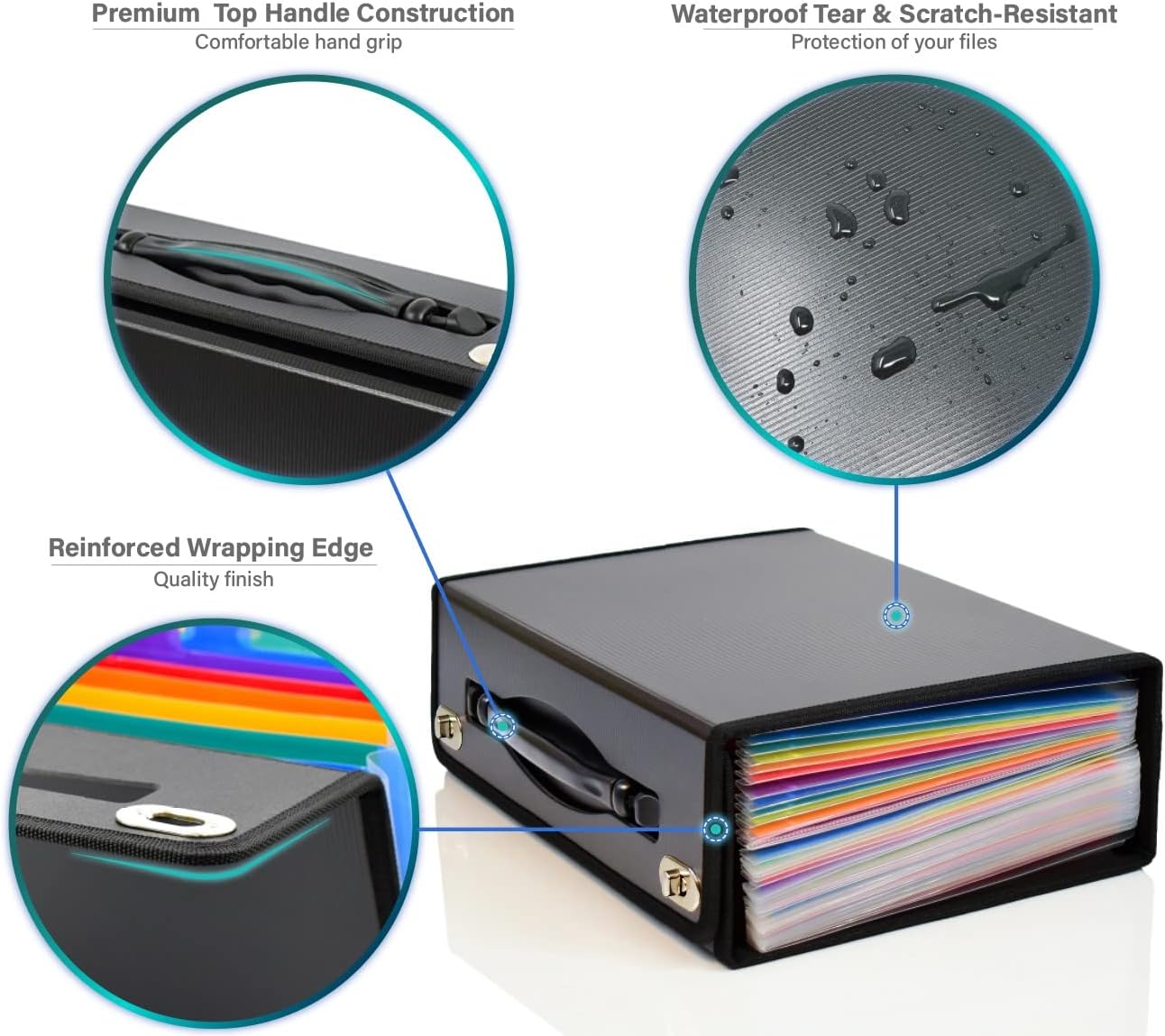 - 36 Individual Pockets with Colorful stylish design are tabbed to allow for adding handwritten labels, ensuring each section can be instantly identified for quick access.