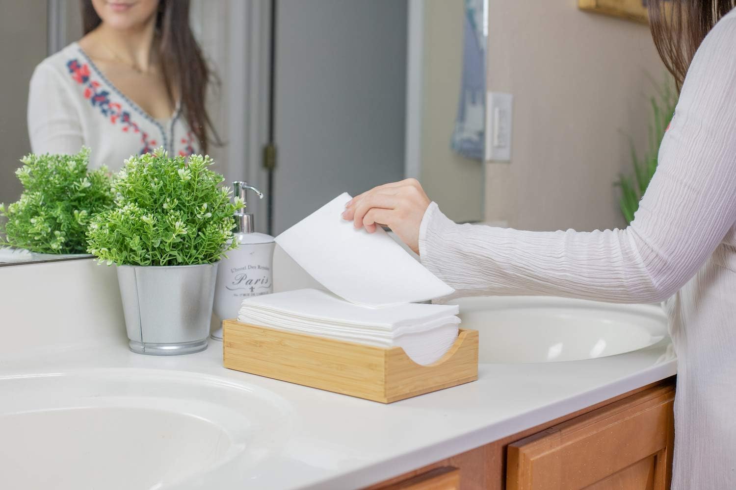 50 Paper Towels Cloth-Like Hand Tissue Paper Napkins, Disposable Hand Towels for Bathroom Guests, Disposable Face Towel for Guest, Washcloths or Dinner Napkin, Made in USA, White