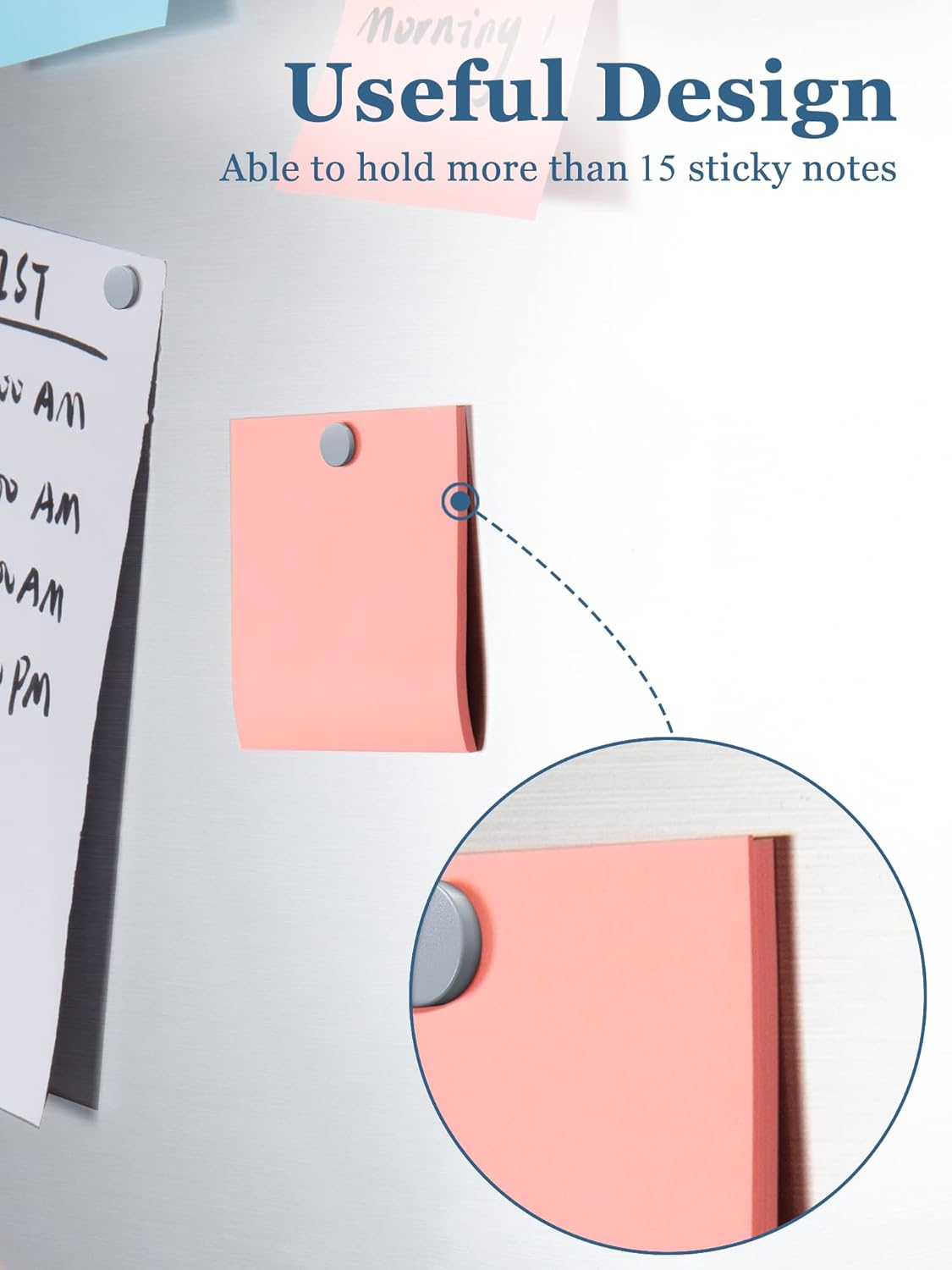 - Useful Design - Despite of its small size (Diameter: 10 mm, thickness: 2.6 mm), each magnet is able to hold at least 15pcs sticky notes. You don't have to worry it's not able to fixate the paper.