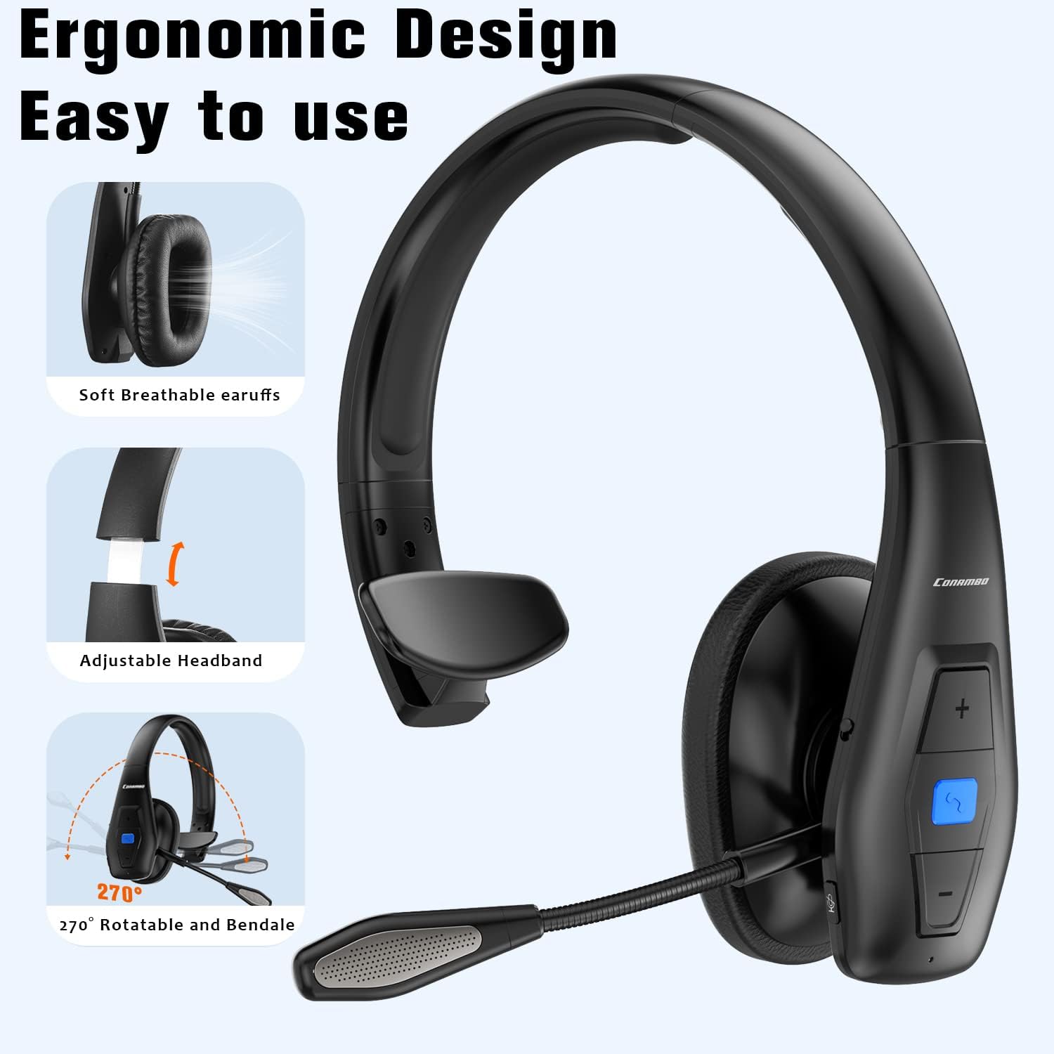 Conambo Noise Cancelling Bluetooth Headset V5.1, 35Hrs HD Talktime CVC8.0 Dual Mic Hands-Free Wireless Headset, Bluetooth Headphones with Mute Button for Cell Phones Business Home Office Trucker