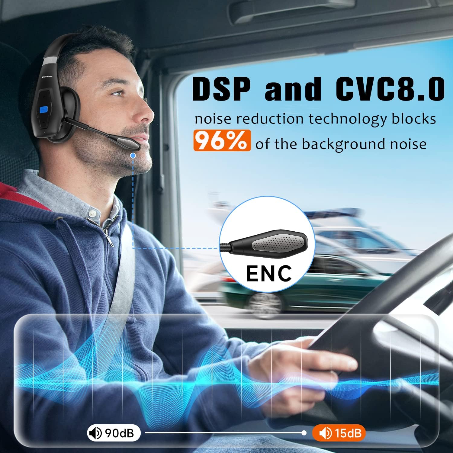- 【Long Battery Life】Equipped with a 400mAh battery designed for long journeys, this trucker Bluetooth headset allows you to talk freely throughout the day. 3.5 Hours charging can offer up to 35hours continuous talking time and 500 hours standby time. Save the trouble of frequent charging