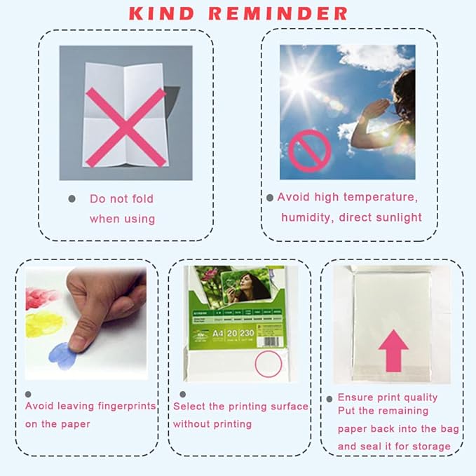 - 【Work with Inkjet Printer】 Premium glossy photo paper can only be used with dye-based ink printers. Single-sided printing, the back side can be written with a pen or ballpoint pen