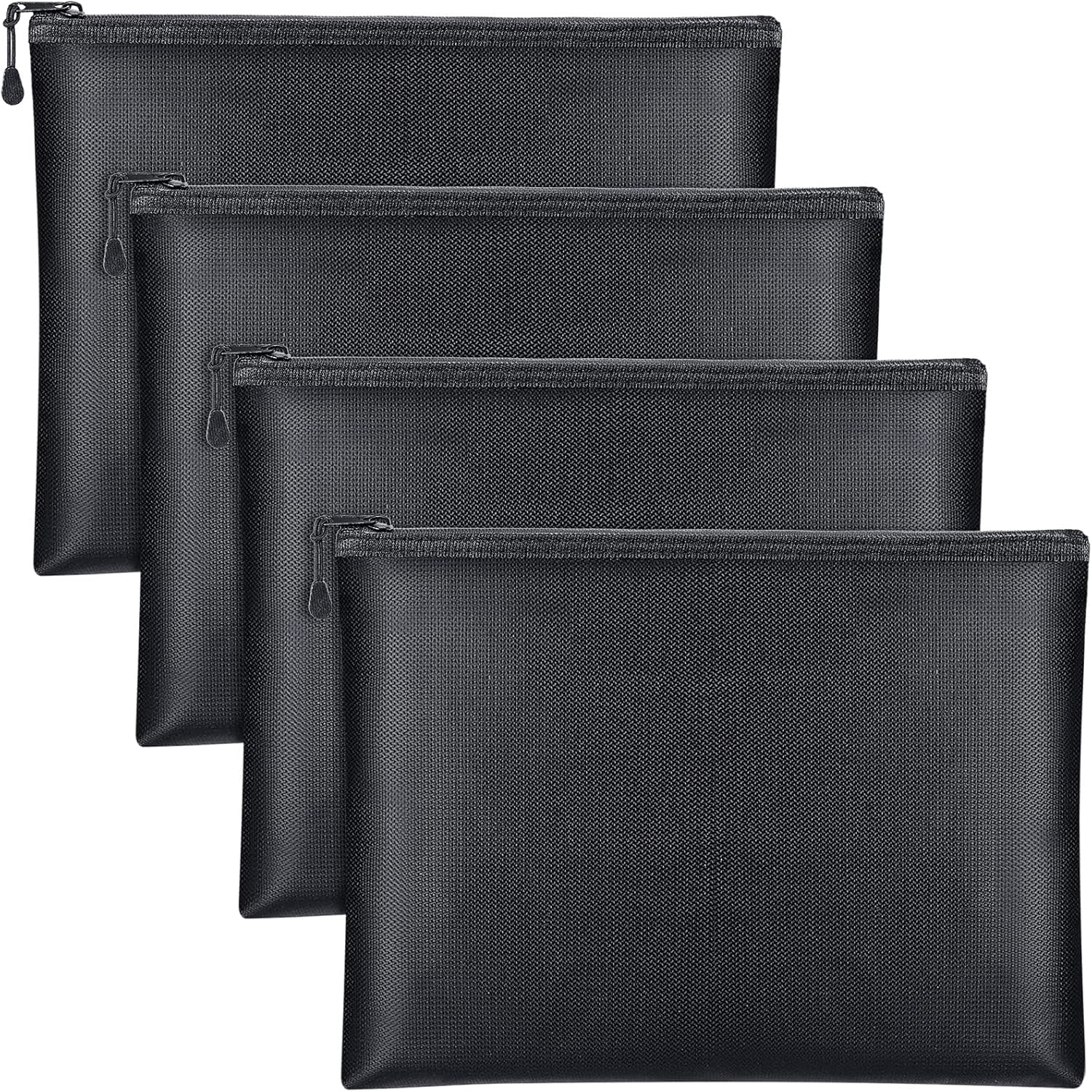 4 Pack Fireproof Document Bags 13.4 x 9.4 Inch Waterproof and Fireproof Money Bag Document Holder with Zipper Fireproof Safe Storage Bag for A4 Documents, Money, Passport and Tablet