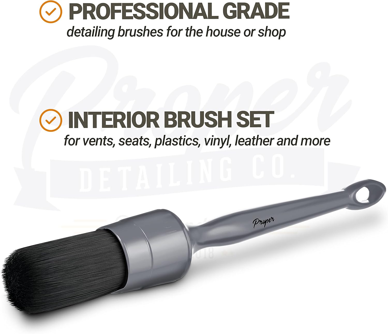 - PROFESSIONAL GRADE - Many professional detailers have used the same set of Proper Detailing Brushes for over ONE year, used daily! Our detail brushes for car detailing are used daily in a professional setting. Whether a hobby detailer or a pro, the Proper Detailing Co. detail brush kit is a perfect choice.