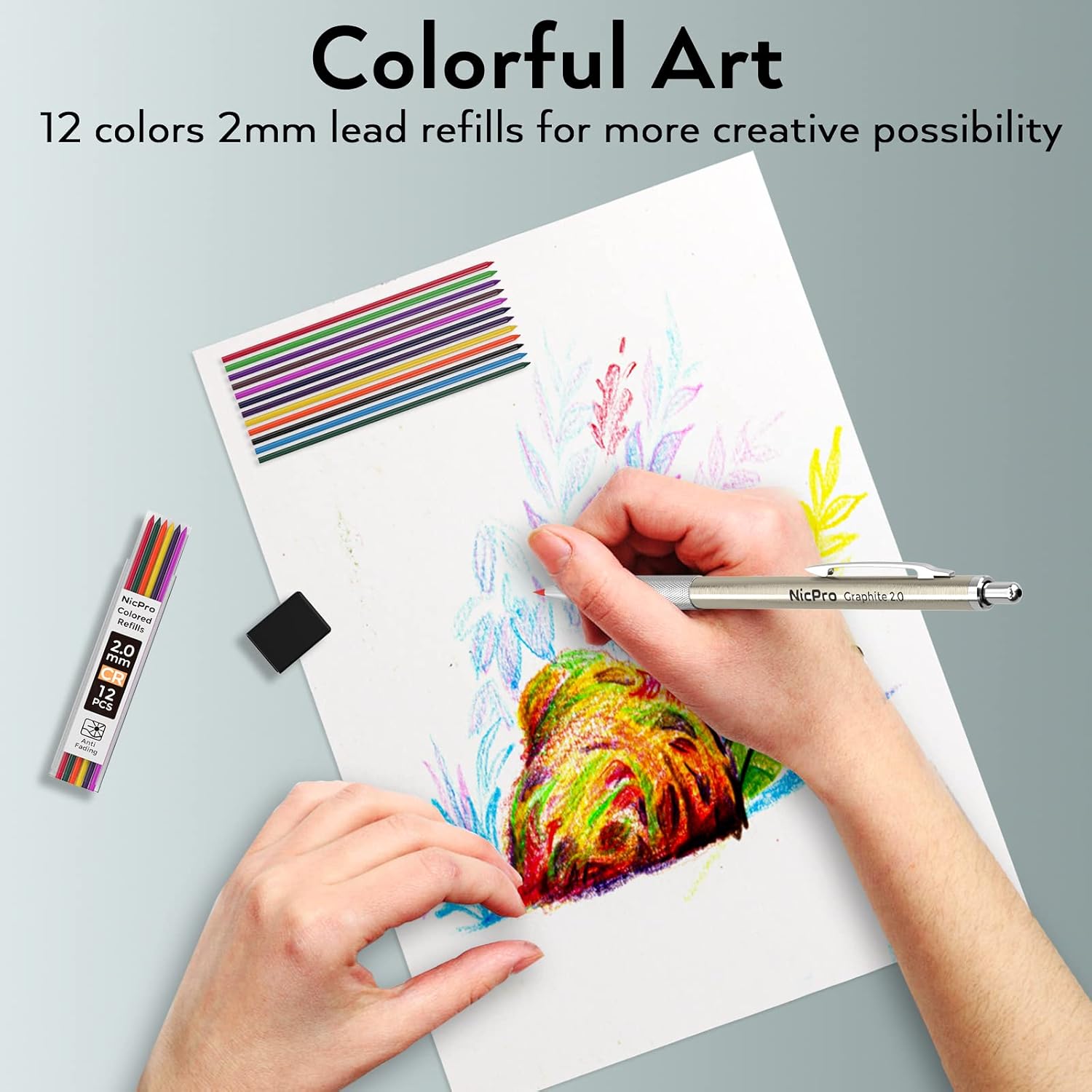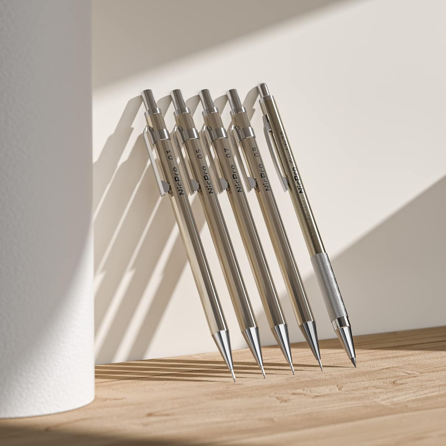 - 1. Awesome Artist Set 20PCS:Nicpro drawing mechanical pencil set comes with 5pcs metal mechanical pencils in 0.3mm,0.5mm, 0.7mm, 0.9mm and 2.0 mm , each sized a different line width for a variety of sketching techniques. 4B soft erasers and mini cap eraser refills are included,cleanly and completely removes graphite markings from paper