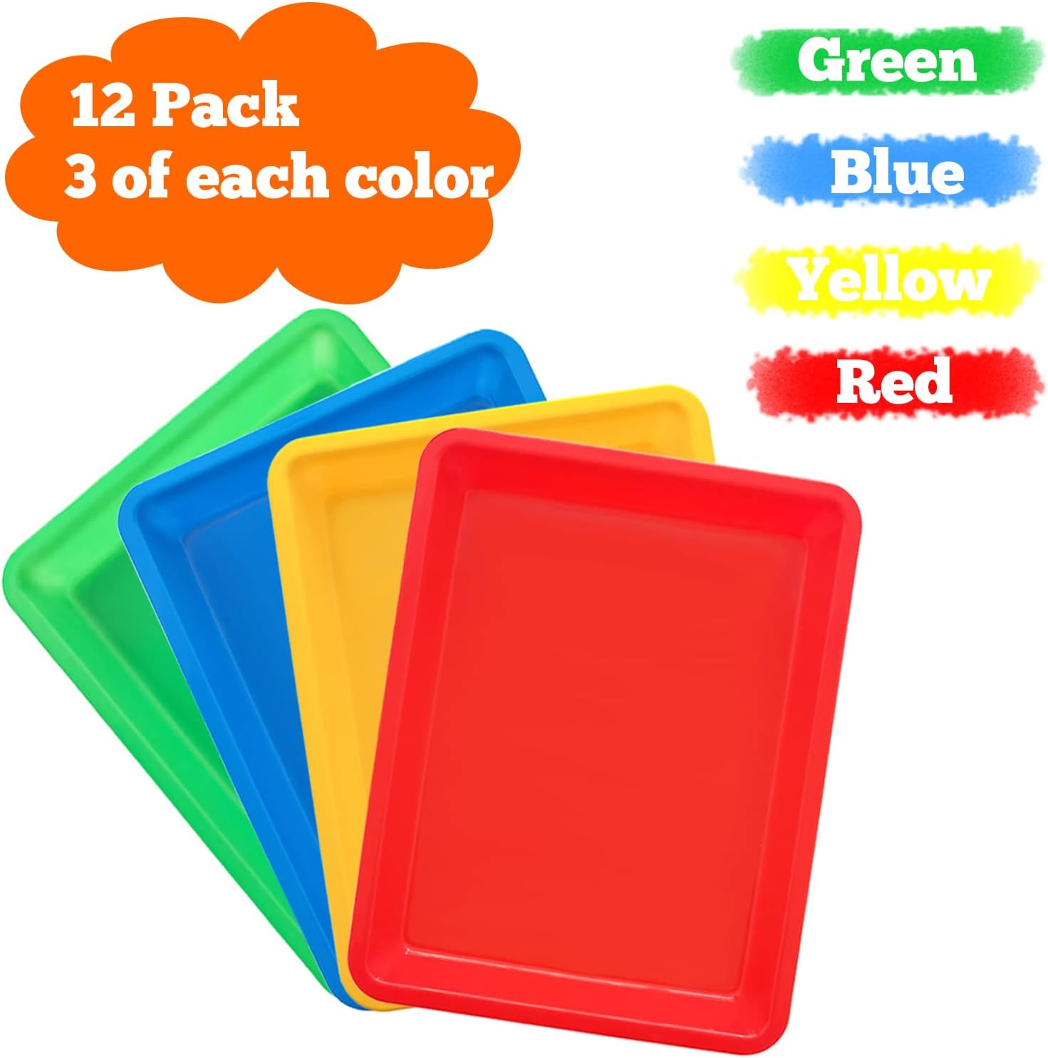 - Package Includes:12 multicolor plastic art trays in yellow,green,red,blue,3 of each color.The colors are bright and perfect for kids