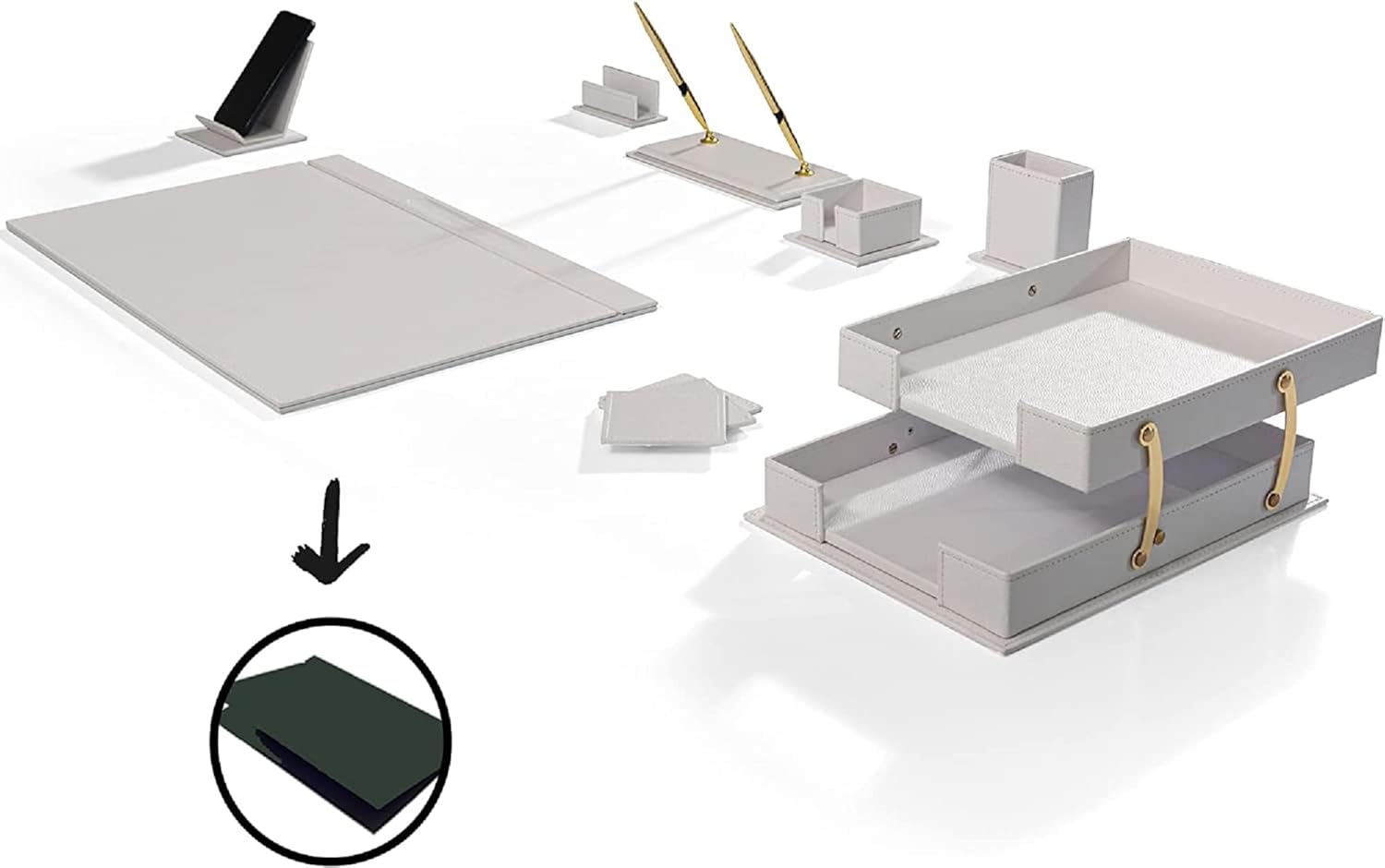 MOOGCO Bonded Set - Desk Accessories - Leather Desk Organizer - Bonded Leather Set - Office Desk Accessories - Home Office Accessories - Desk Supplies - Leather Desk Set - Office Accessories