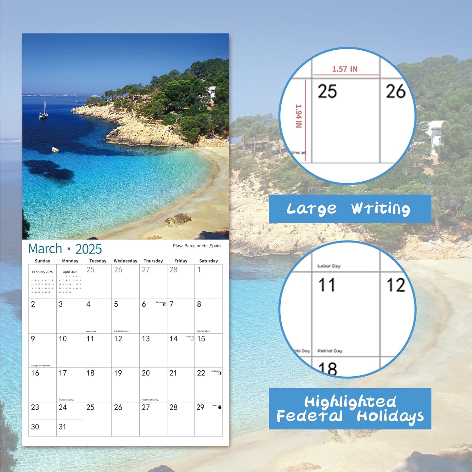 2025 Wall Calendar,Calendar 2026, July 2025 - June 2026, Wall Calendar BEACHES, 12" x 24" Opened,Full Page Months Thick & Sturdy Paper for Calendar Organizing & Planning