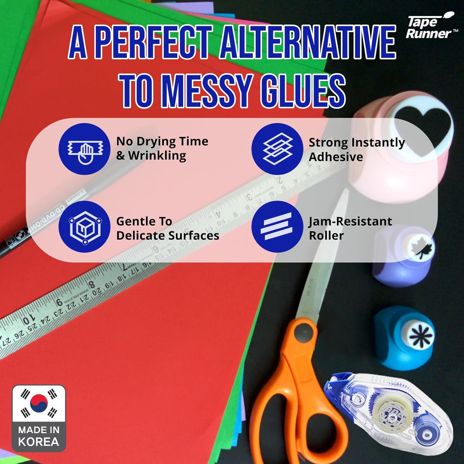 TAPE RUNNER - Double Sided Adhesive with Dispenser Roller Included - Acid Free, Sticky, Clear & Transparent - Ideal for Scrapbooking, Crafts & More - Mini (197 inches per Cartridge), 5 Cartridges