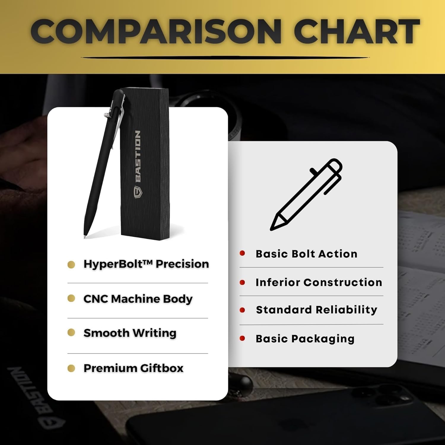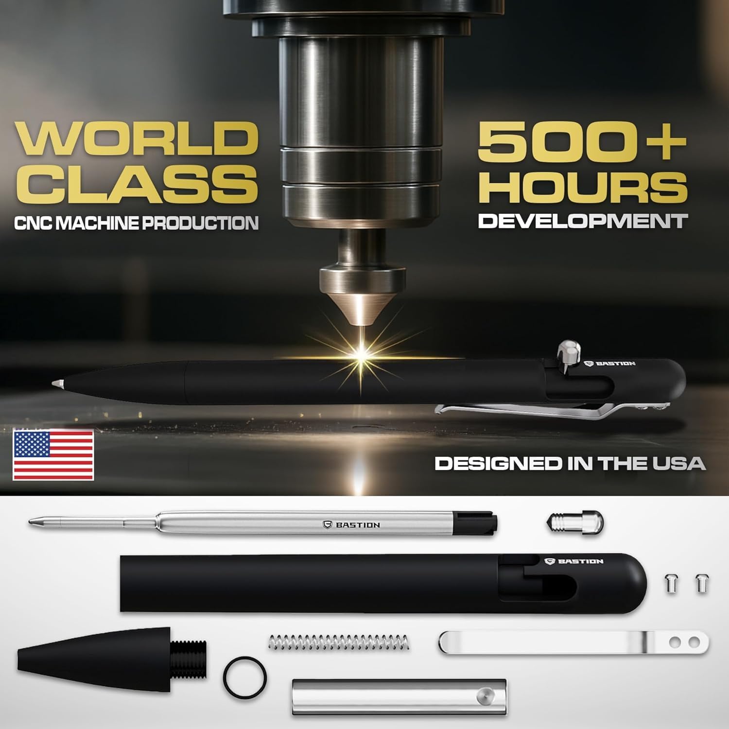BASTION® Luxury Slim Bolt Action Pen, Lightweight Aluminum EDC Pen with Fine Tip, Professional Ballpoint Pen for School and Work - Black