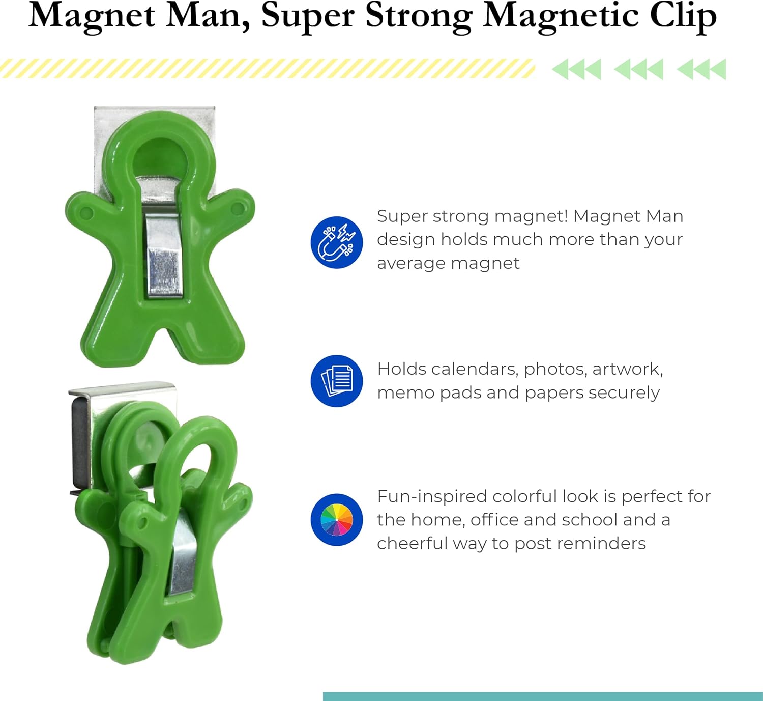 The Pencil Grip Magnet Man Magnetic Clip, Assorted Colors, Pack of 10