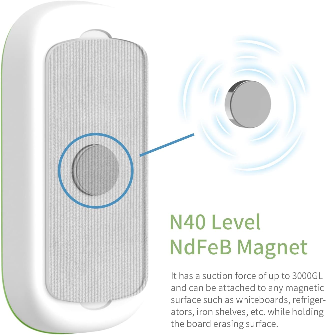- STRONG MAGNET - The built-in magnet helps attach the white board eraser to a magnetic surface for easy cleaning.