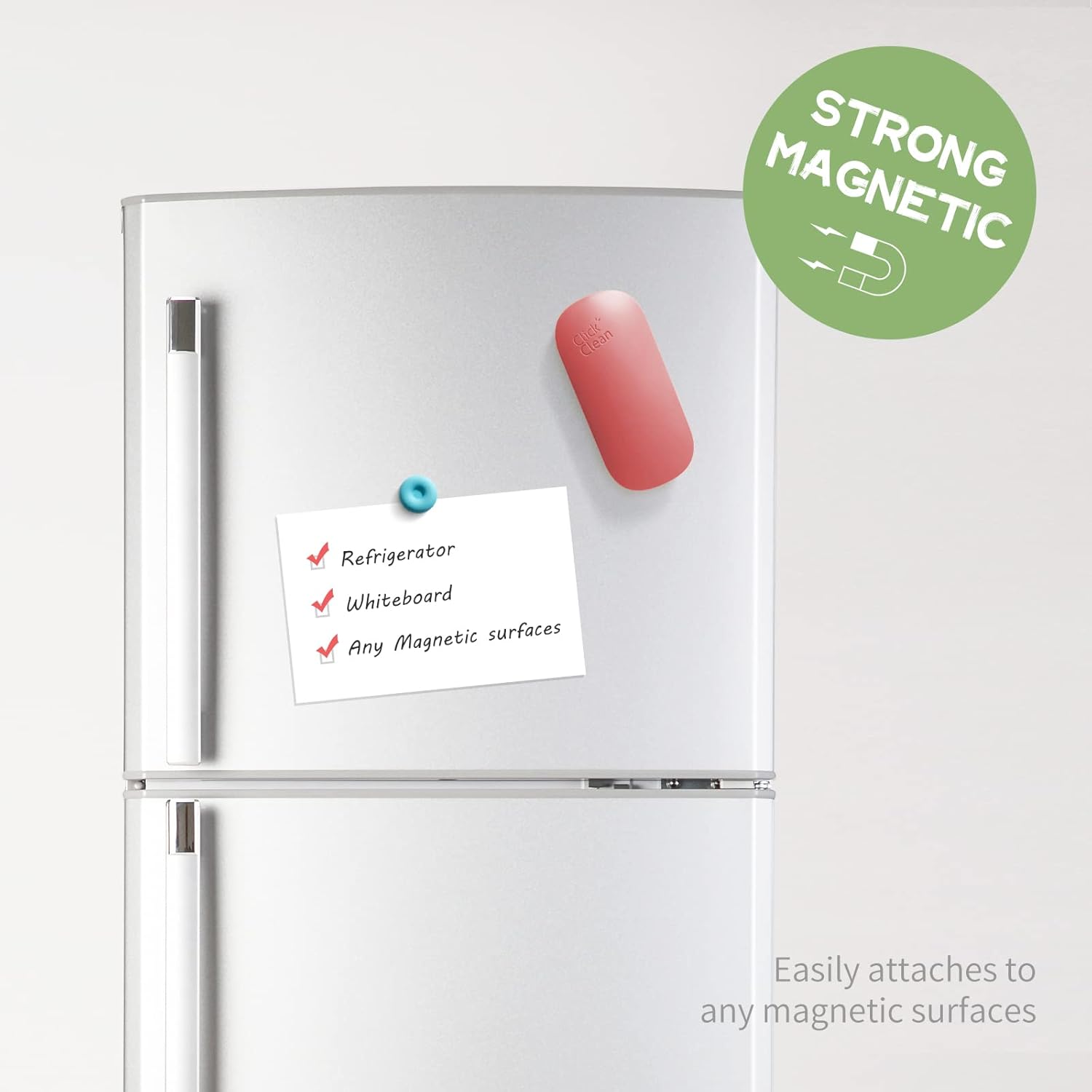 CLICK CLEAN Replaceable Dry Erase Board Eraser, 4-in-1 Magnetic Whiteboard Eraser with 3 Replaceable Felt Pads, Free 3.4oz Whiteboard Cleaner Included, Intended for Classroom, Home and Office