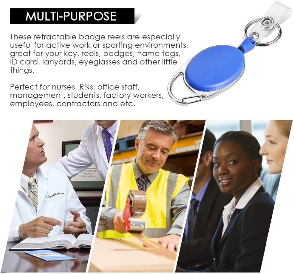 - Wide application- These retractable badge reels can be used for active work or sporting environments, great for your badges, reels, name tags, ID cards, keys, lanyards, eyeglasses and other little things. Perfect for nurses, RNs, office staff, management, students, factory workers, employees, contractors and etc.