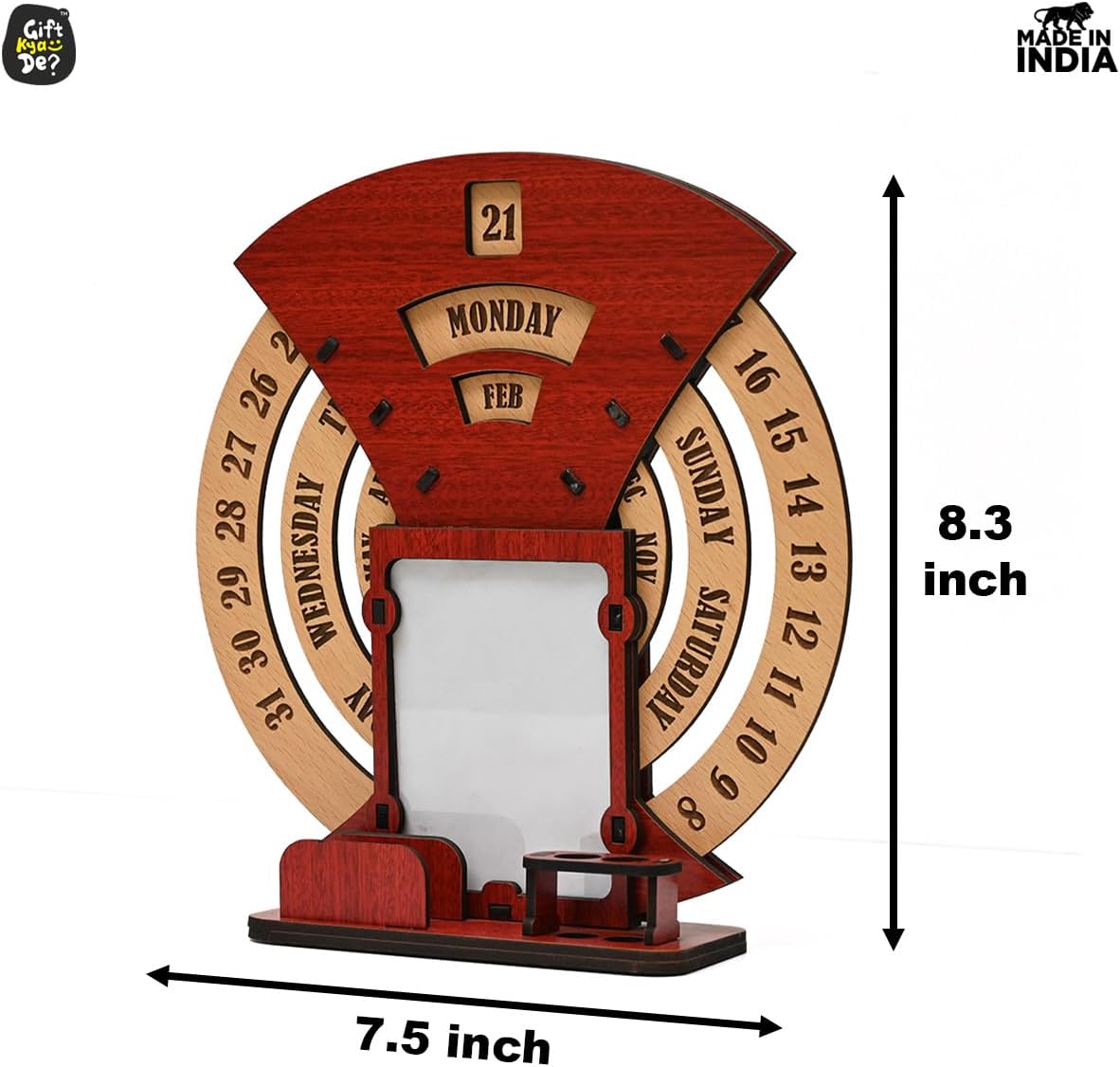 GKD Wooden Desk/Table Calendar to Lifetime Infinite Calendar 2025 with Desk Organizer and Photo Frame for Office/Home (Red)