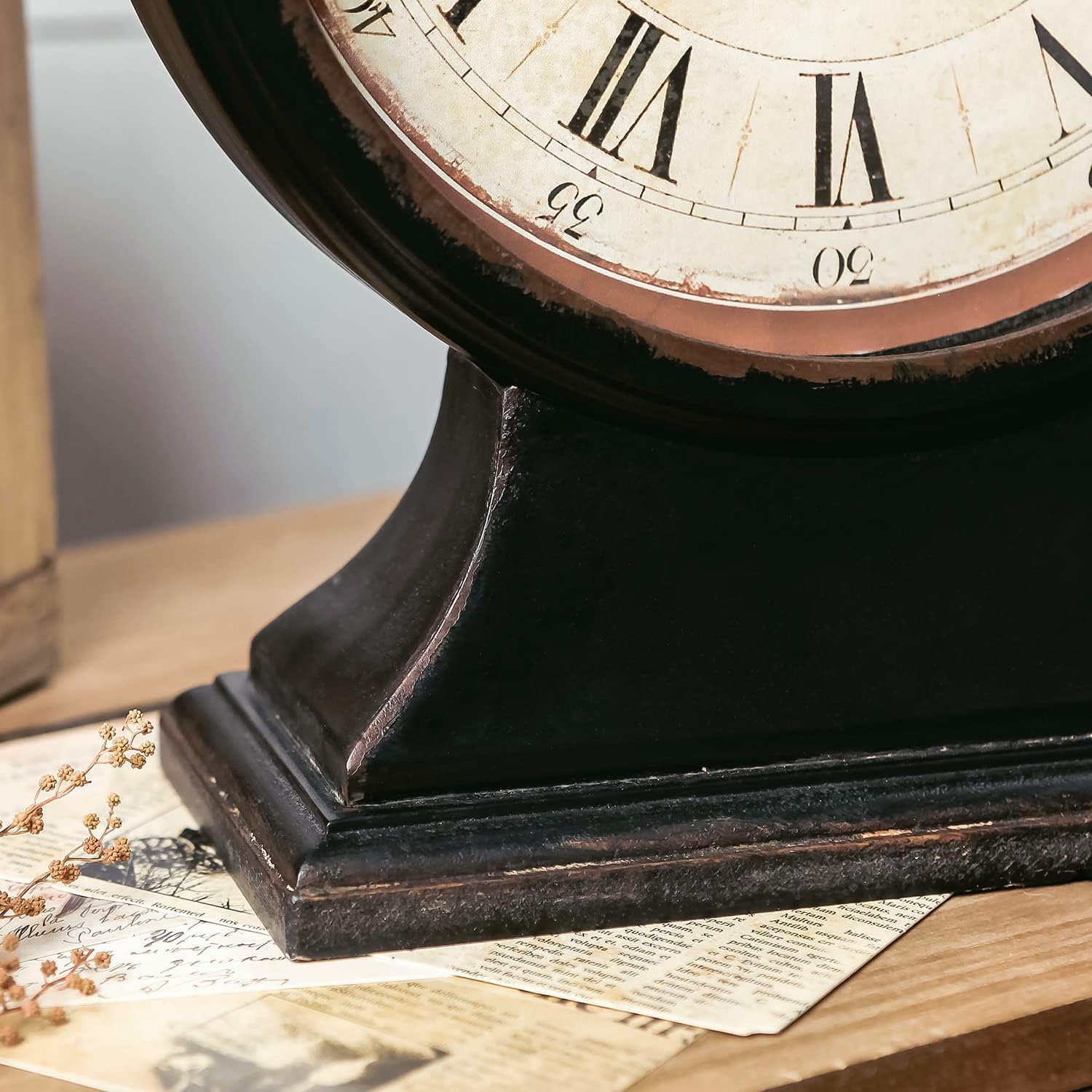 NIKKY HOME Vintage Black Mantel Clocks for Fireplace, Silent Non-Ticking Battery Operated Large Table Desk Shelf Metal Clock for Living Room Decor