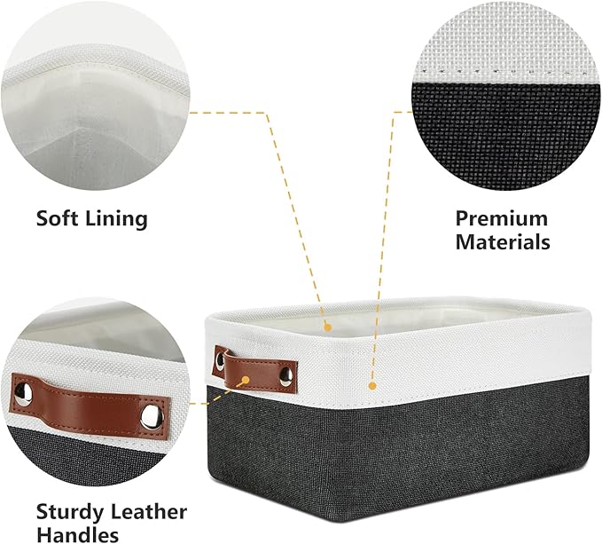 DULLEMELO Small Storage Baskets 6 Pack, Fabric Collapsible Gift Storage Baskets for Shelves, Closets, Nursery, Home, Office Organizing,Small Canvas Linen Rectangular Storage Bins (White&Black)